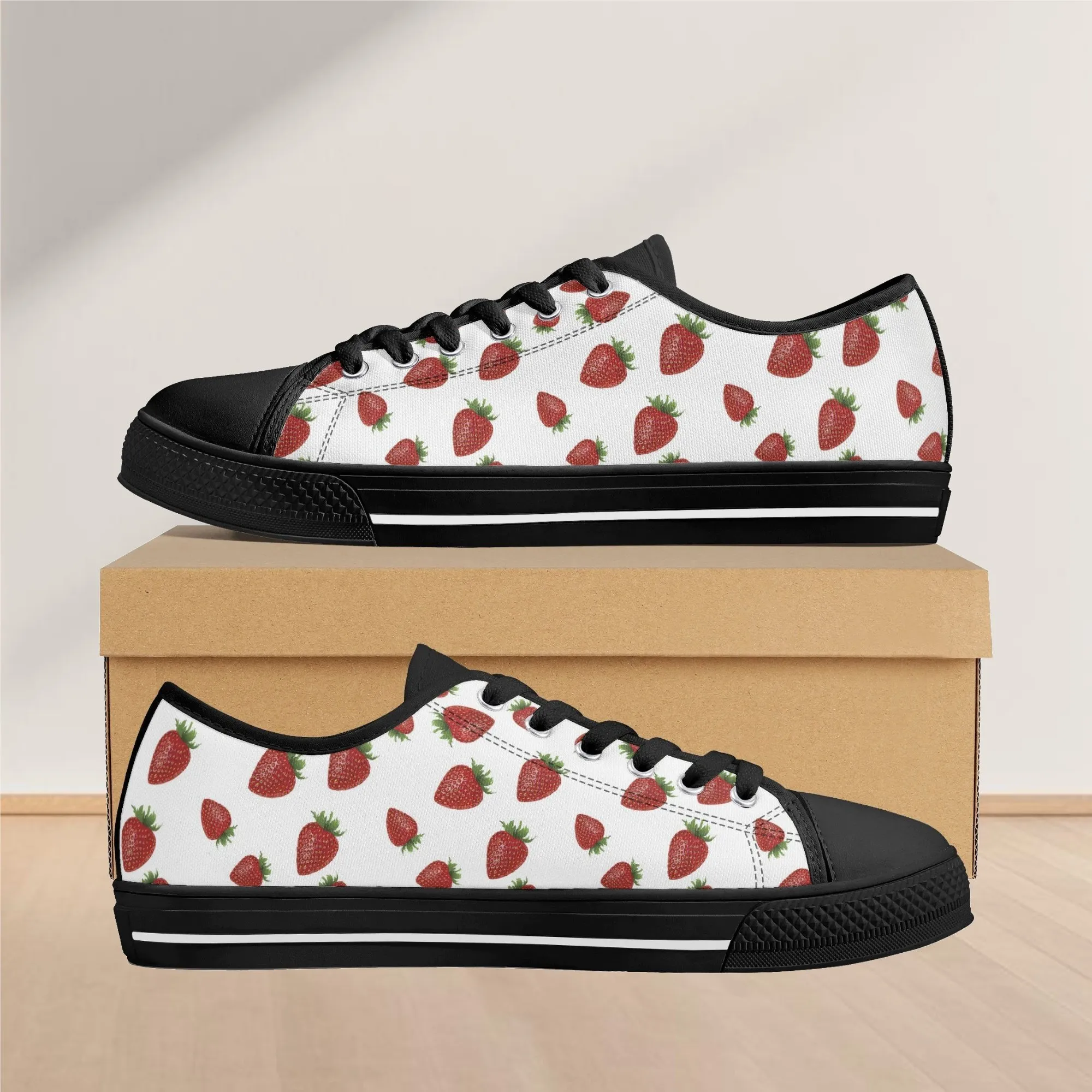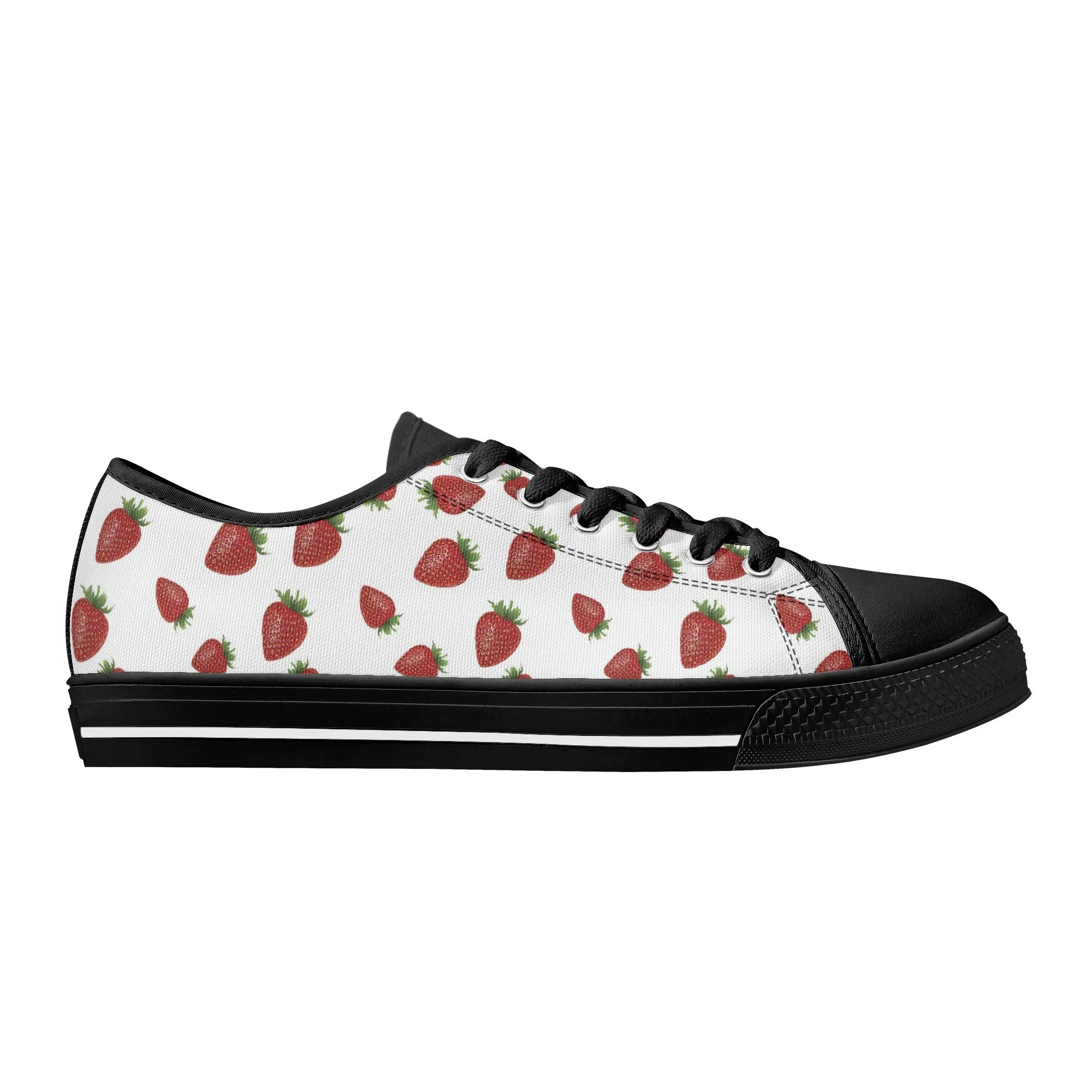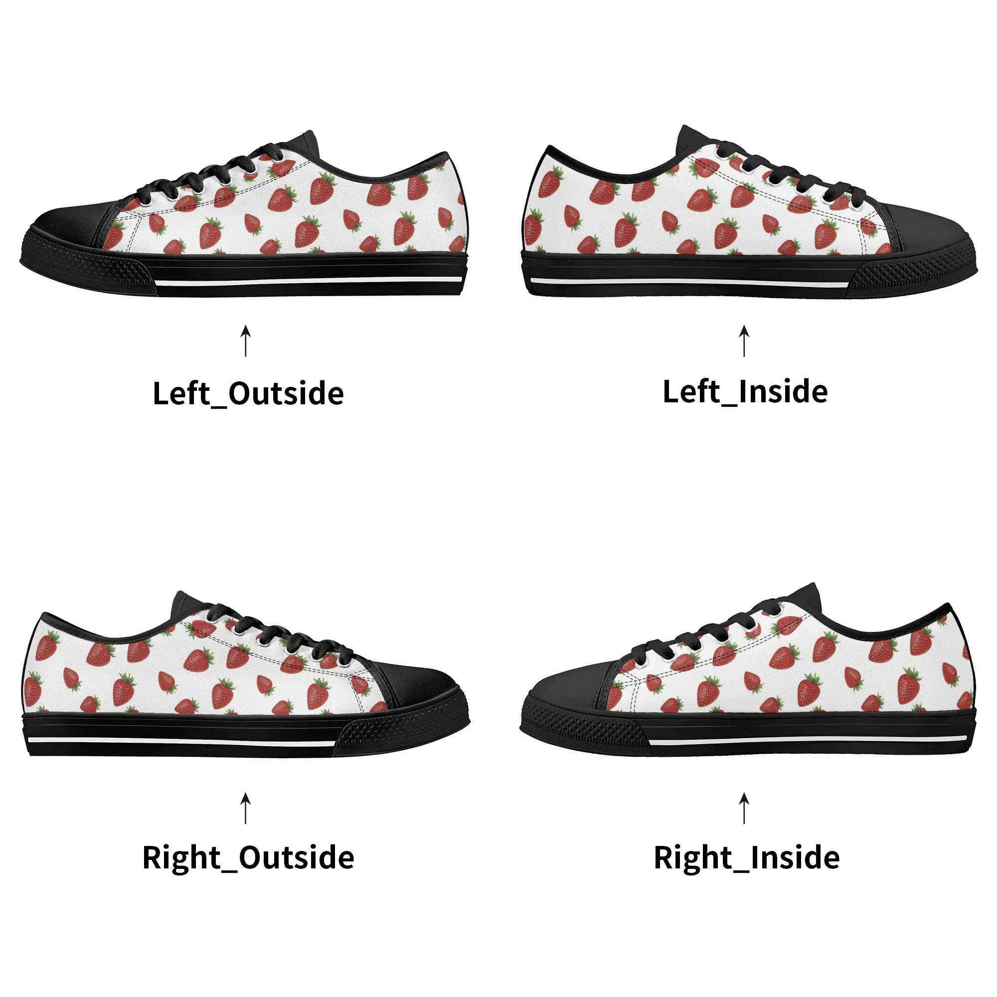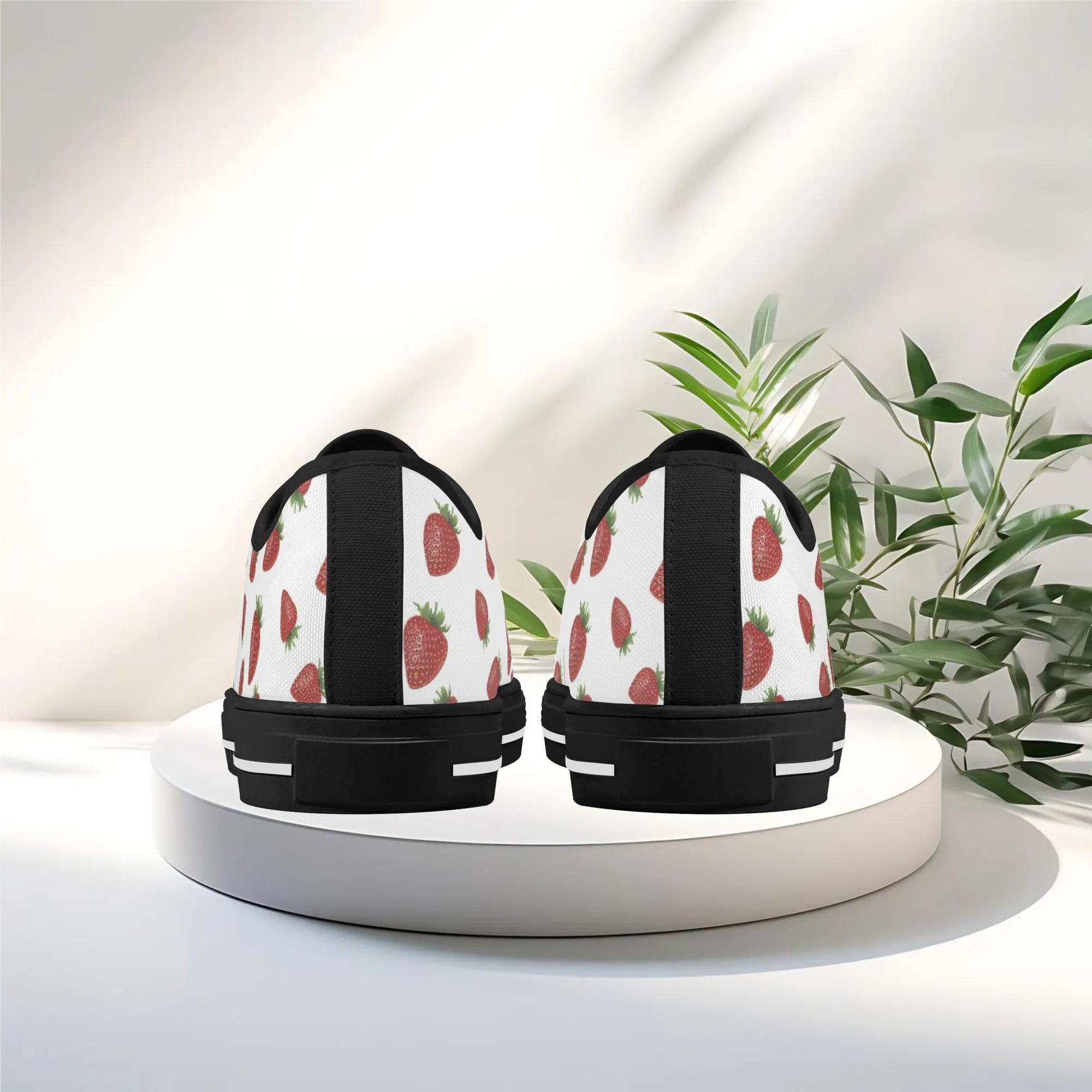 🍓 Sweeten your step with these adorable Strawberry Print Low Top Canvas Shoes! Featuring a playful all-over pattern of red strawberries on a crisp white background, these sneakers are perfect for adding a touch of cute, whimsical charm to your everyday outfits. Ideal for spring, summer, and any casual outing, their durable construction and comfortable platform sole make them a fun and practical addition to any shoe collection. Treat yourself or a friend to this sweet footwear!