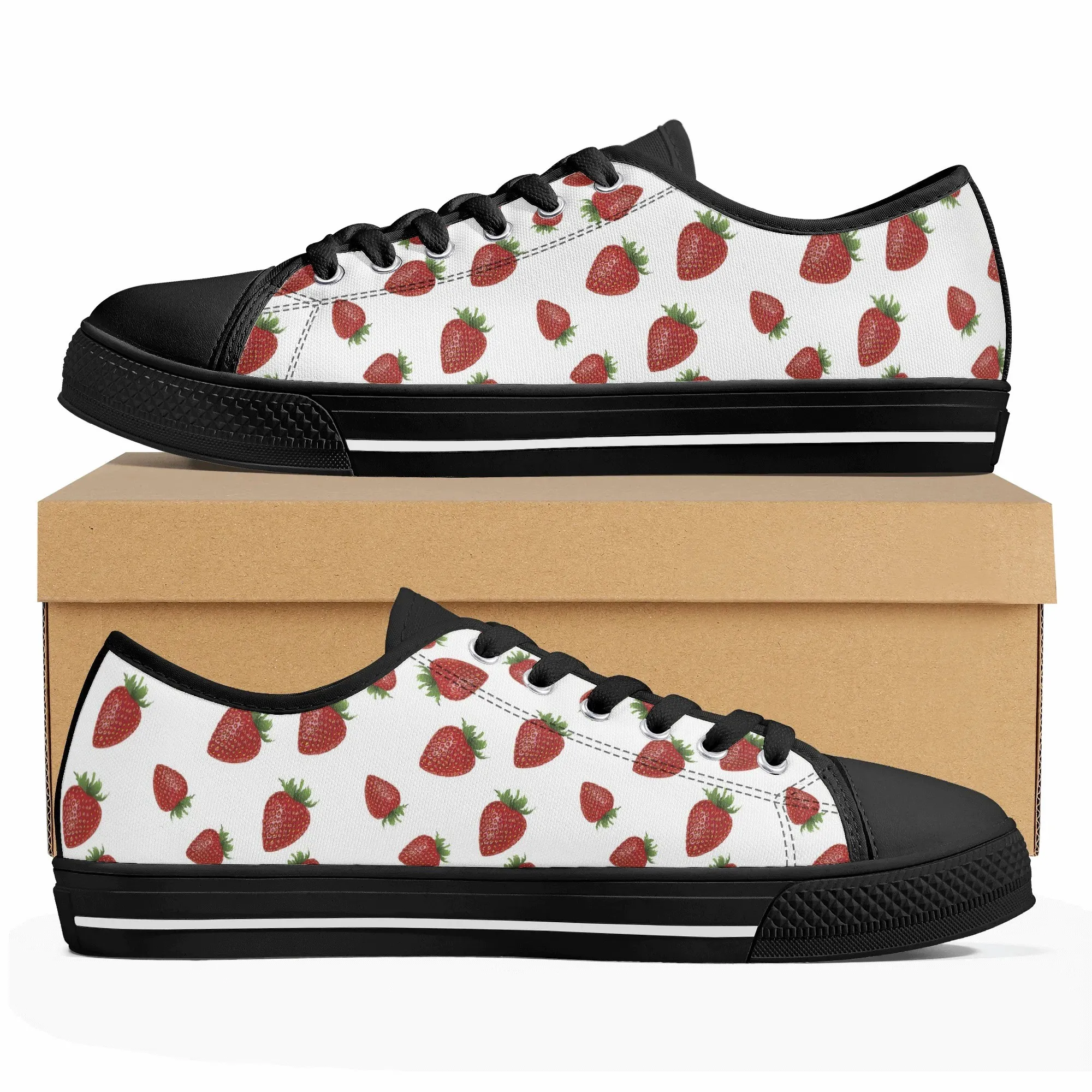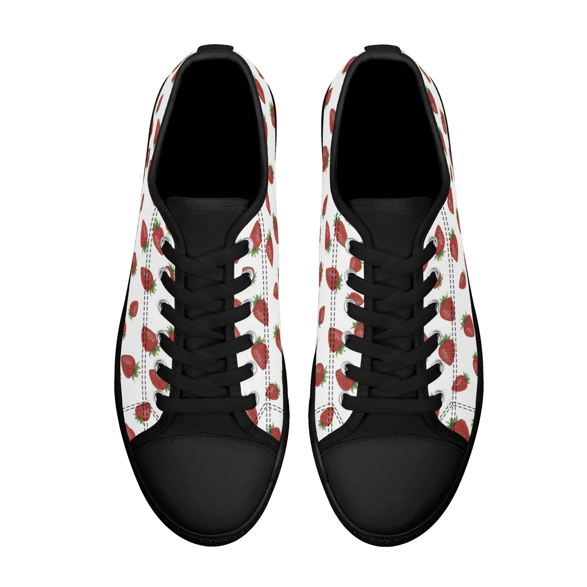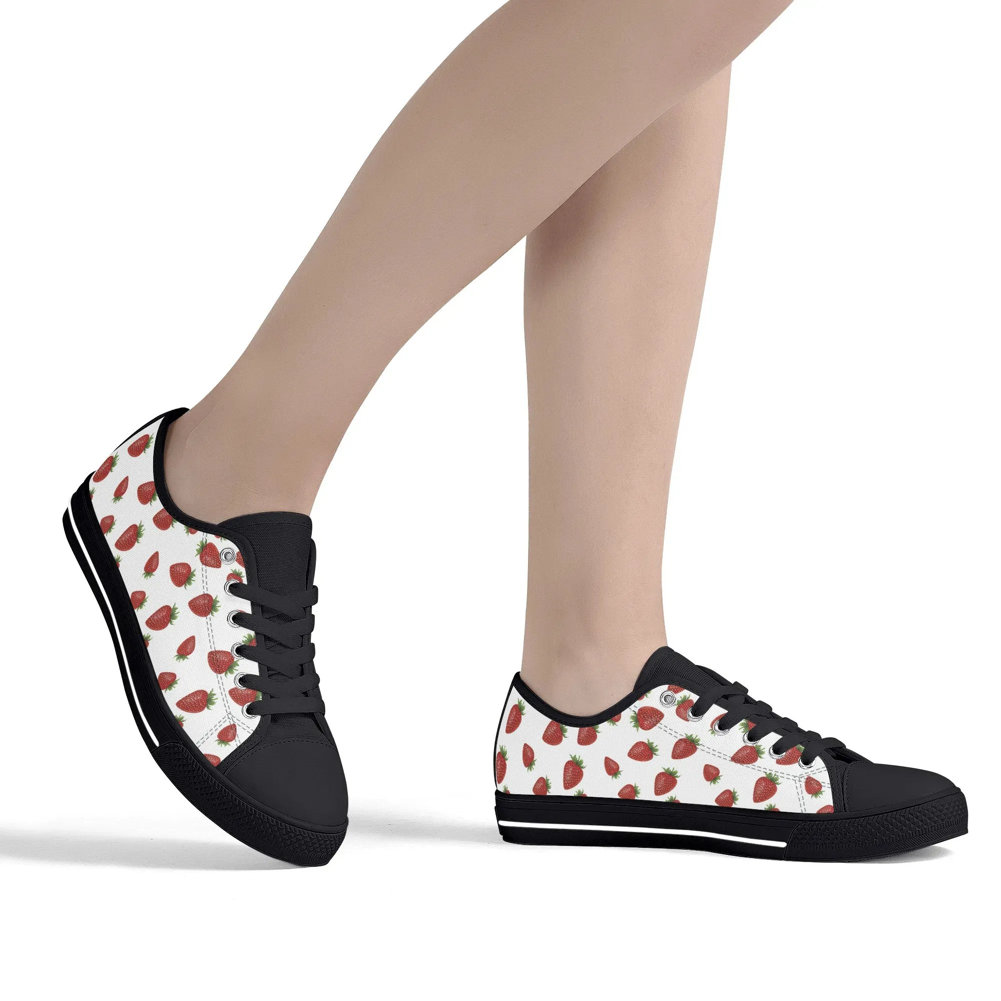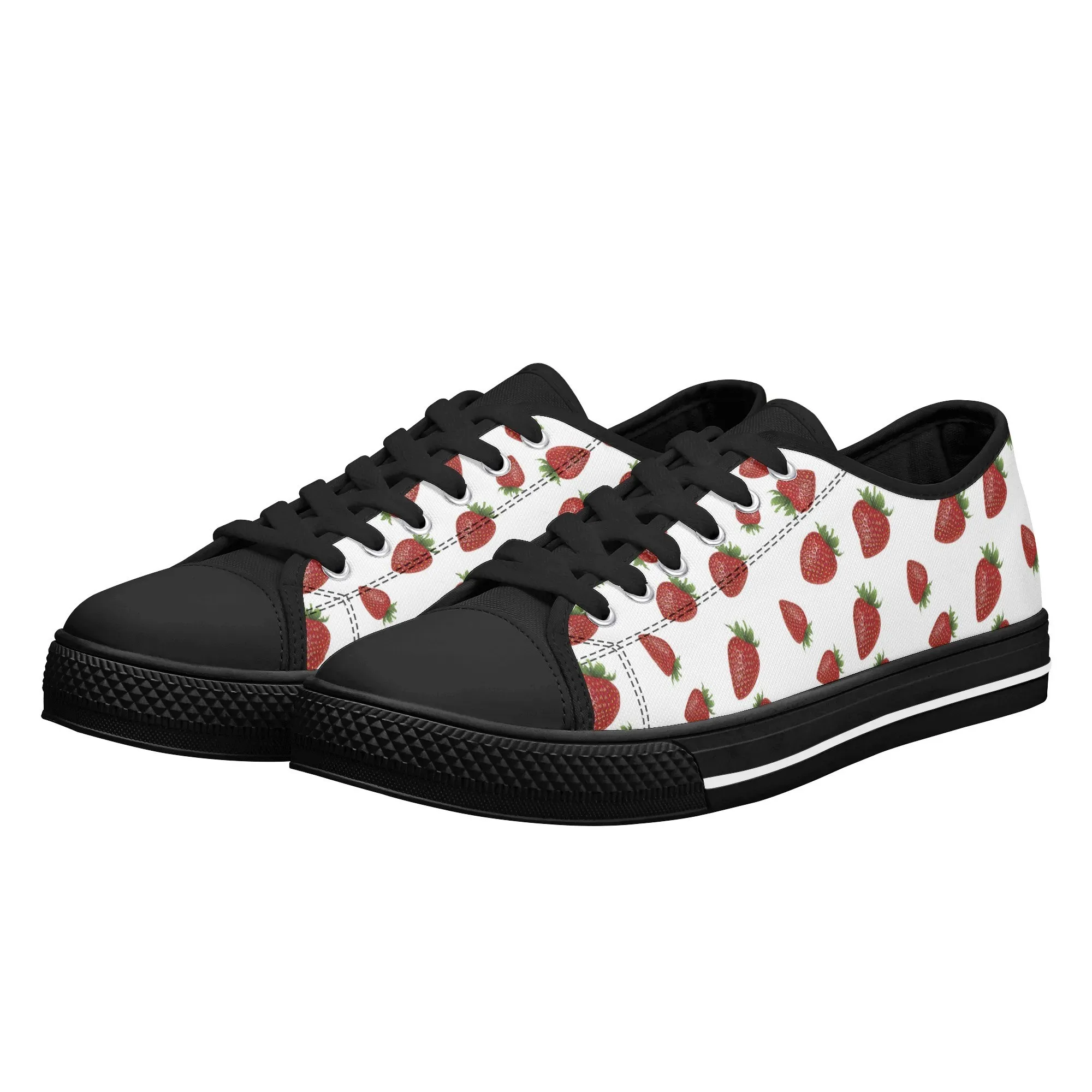 🍓 Sweeten your step with these adorable Strawberry Print Low Top Canvas Shoes! Featuring a playful all-over pattern of red strawberries on a crisp white background, these sneakers are perfect for adding a touch of cute, whimsical charm to your everyday outfits. Ideal for spring, summer, and any casual outing, their durable construction and comfortable platform sole make them a fun and practical addition to any shoe collection. Treat yourself or a friend to this sweet footwear!