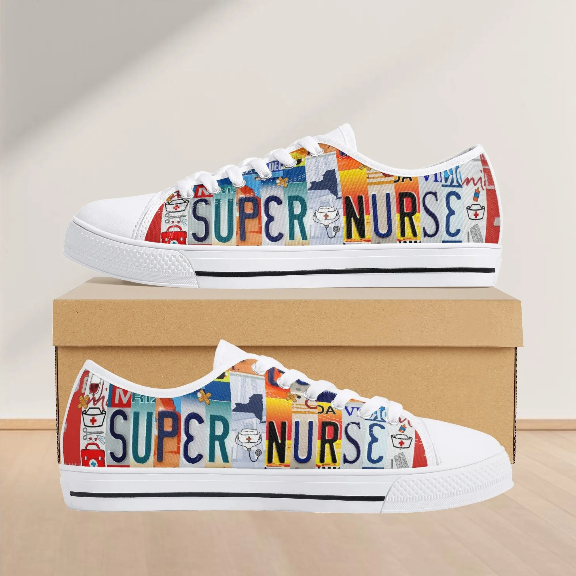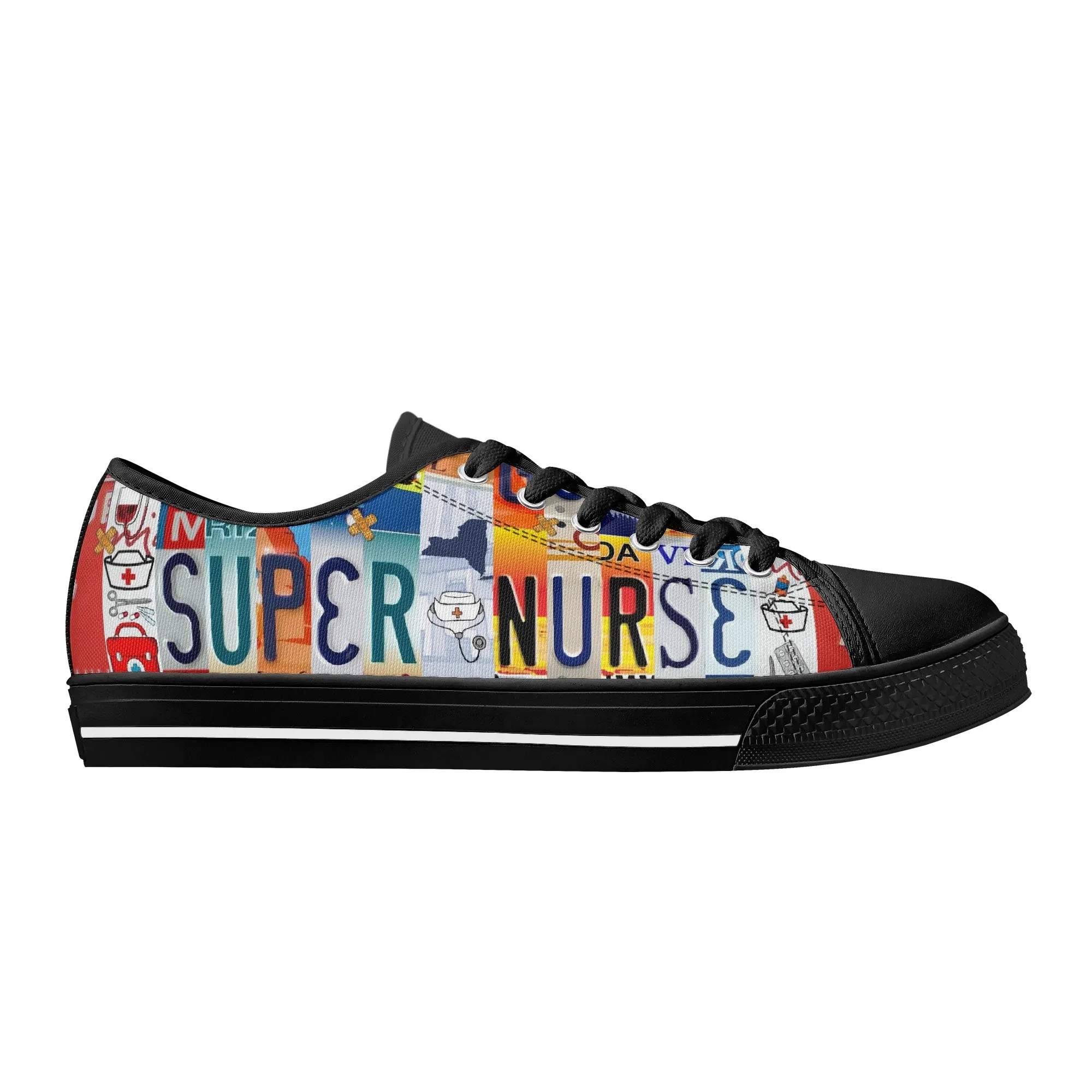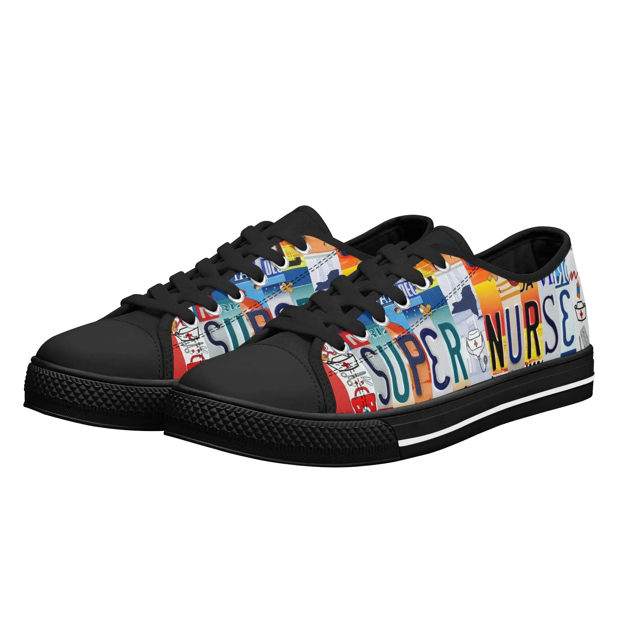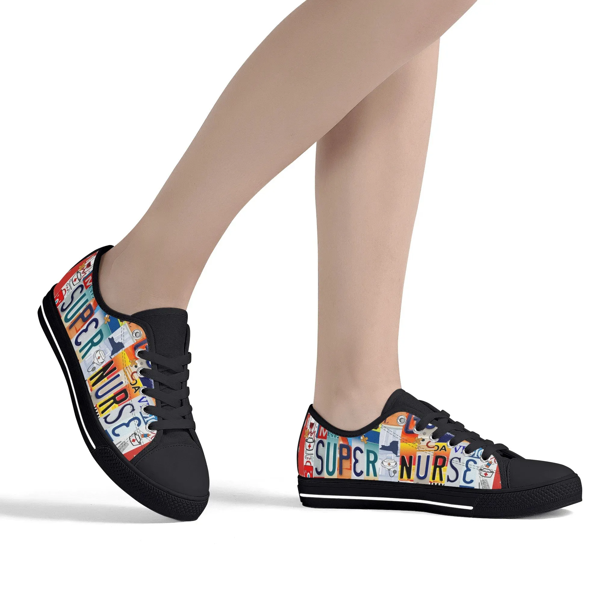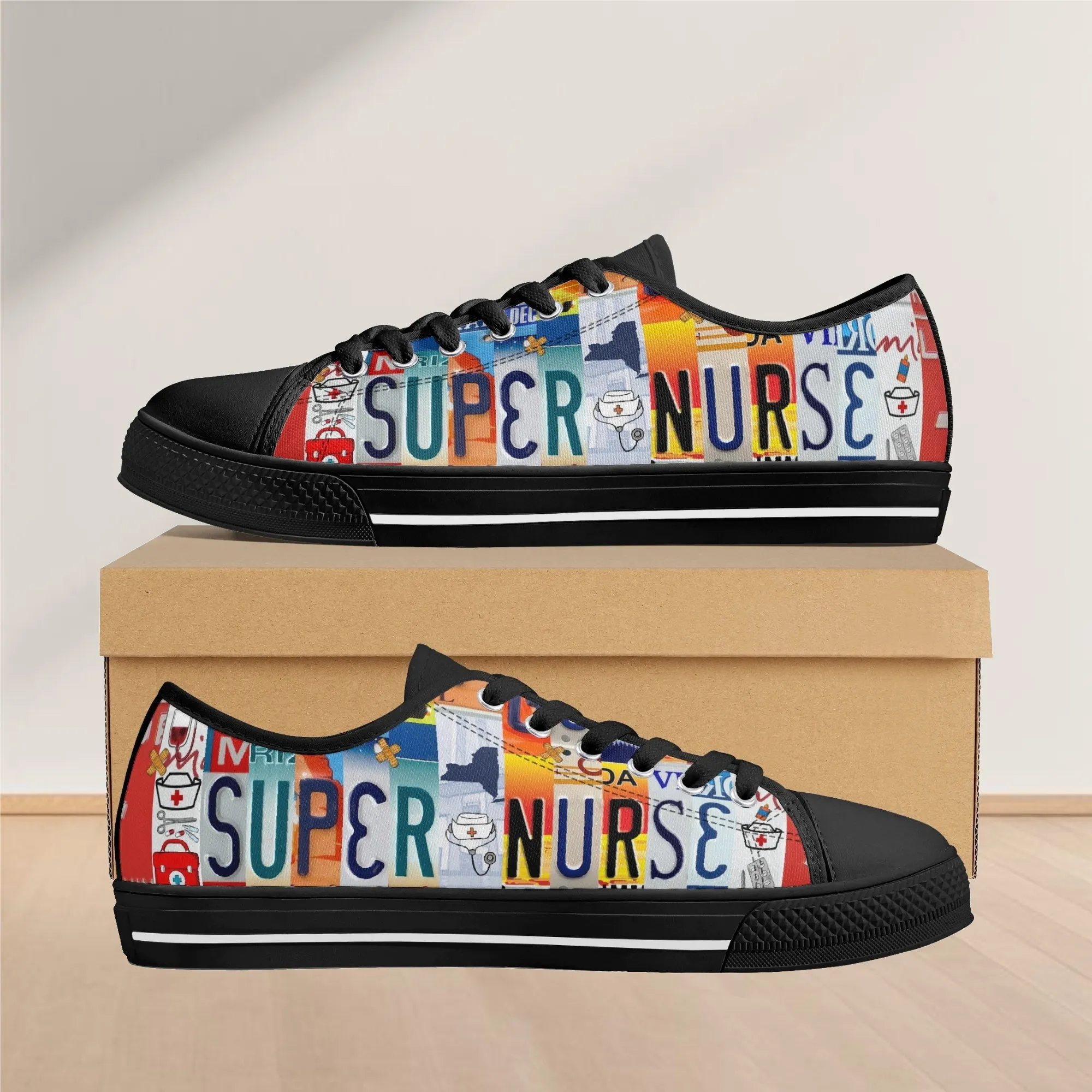 Show off your medical pride with these fantastic “SUPER NURSE” Low Top Canvas Shoes! Featuring a bold, colorful license plate art graphic with symbols of the healthcare profession, these sneakers are the perfect way to honor a dedicated nurse or medical student. Designed for comfortable, long-shift wear, they make an unforgettable and highly appreciated gift for Nursing School Graduation, Nurse’s Week, or any occasion celebrating a healthcare hero.
