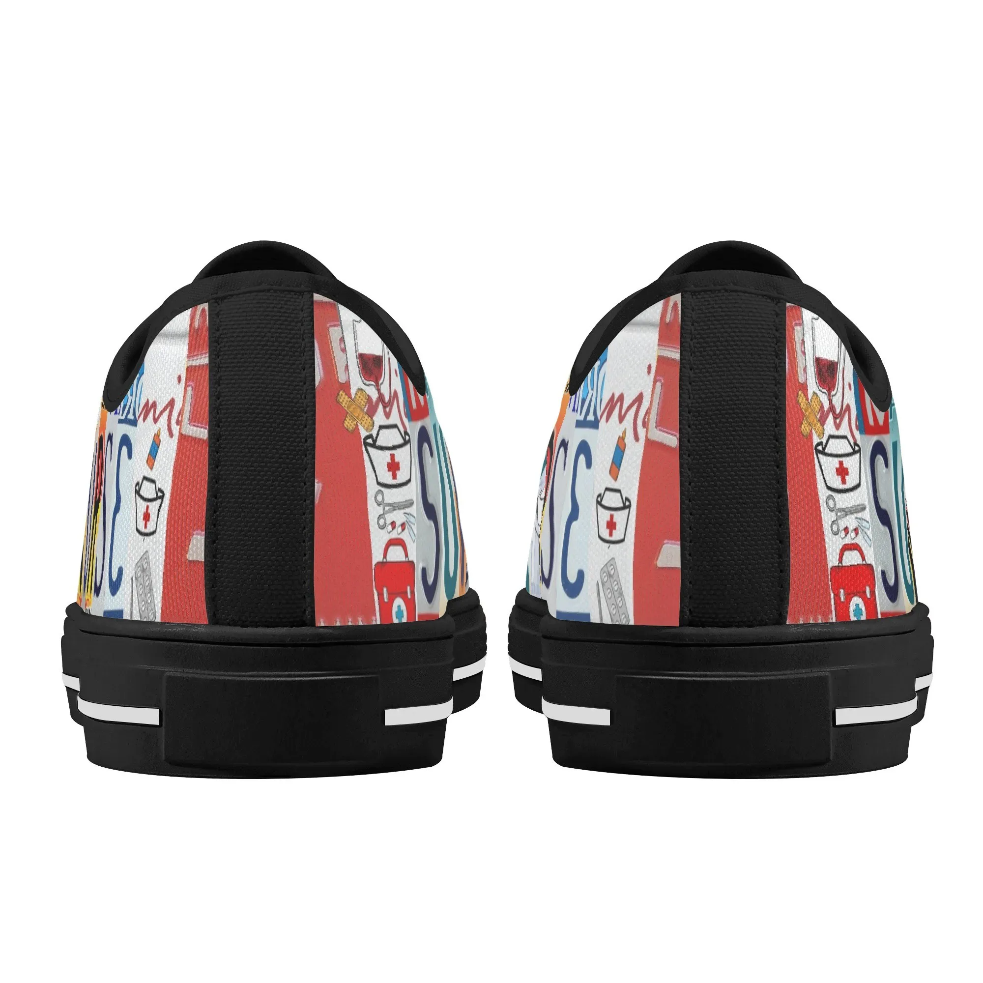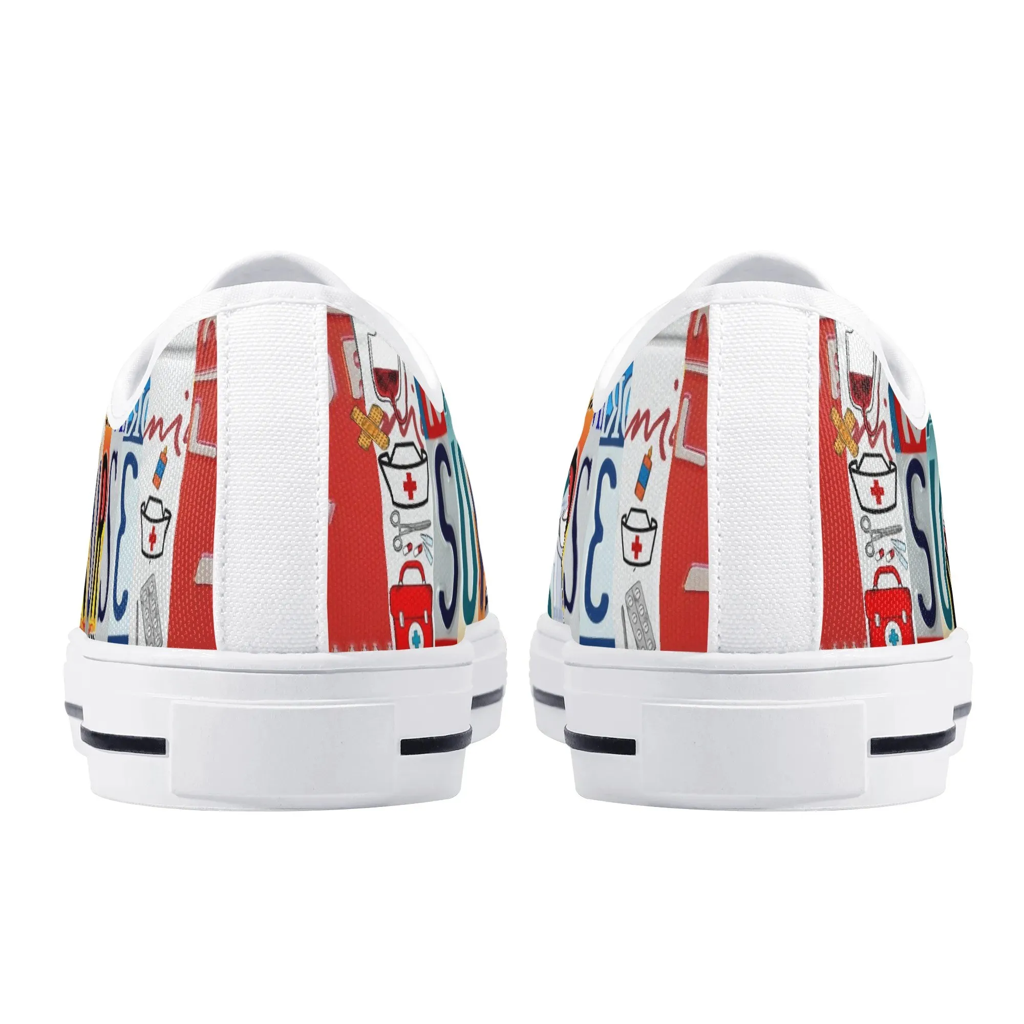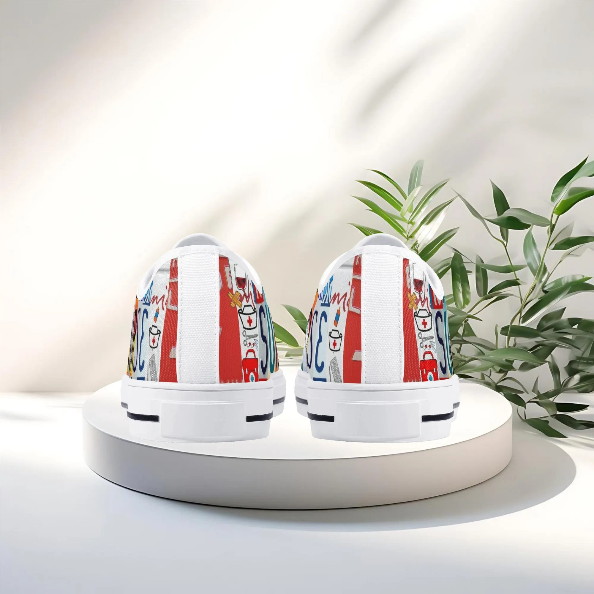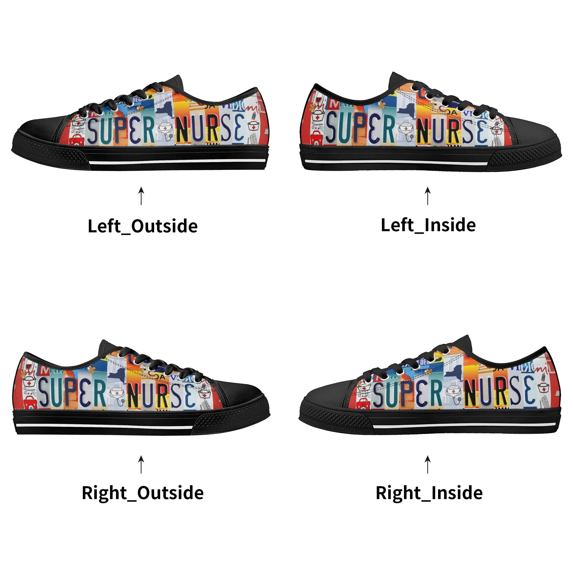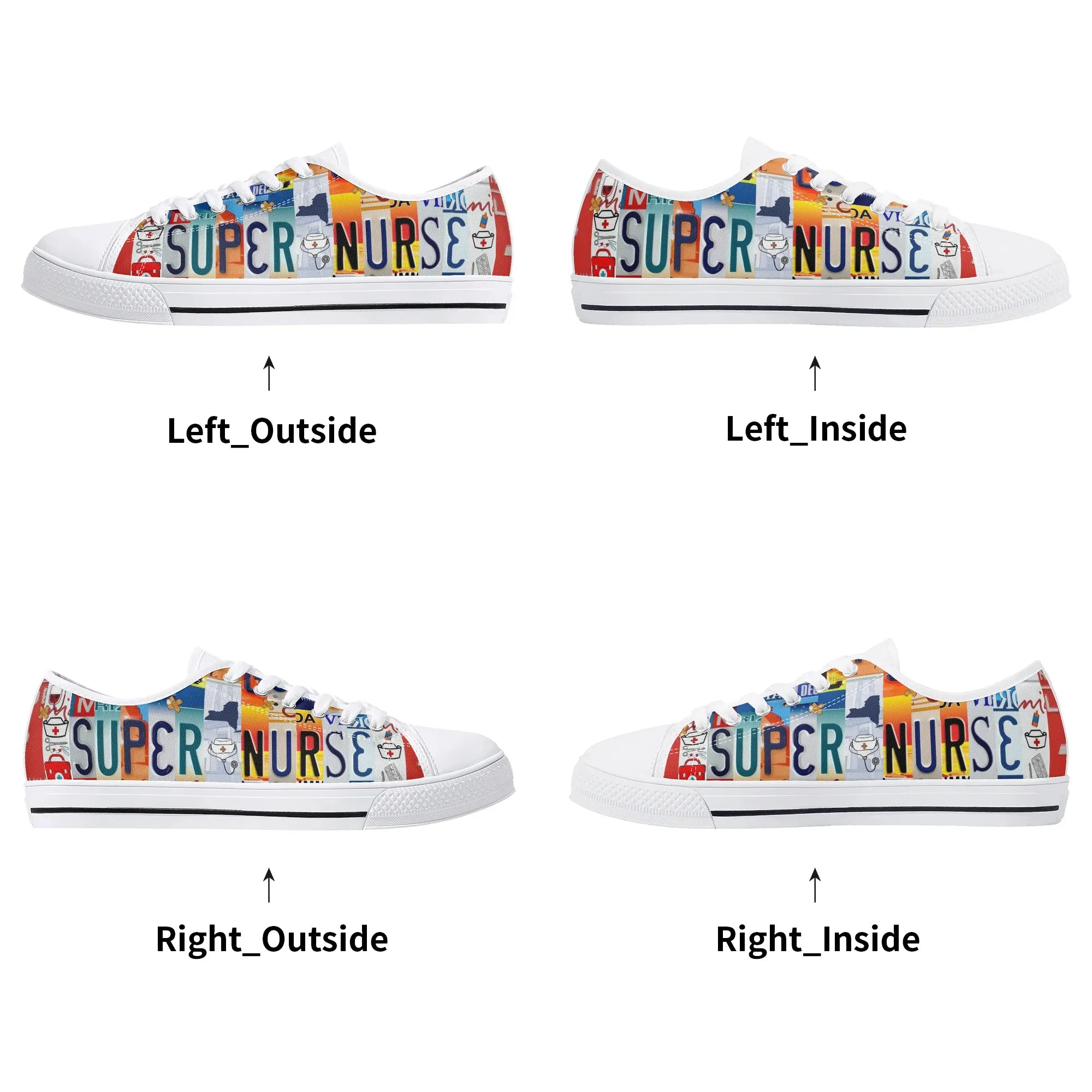 Show off your medical pride with these fantastic “SUPER NURSE” Low Top Canvas Shoes! Featuring a bold, colorful license plate art graphic with symbols of the healthcare profession, these sneakers are the perfect way to honor a dedicated nurse or medical student. Designed for comfortable, long-shift wear, they make an unforgettable and highly appreciated gift for Nursing School Graduation, Nurse’s Week, or any occasion celebrating a healthcare hero.