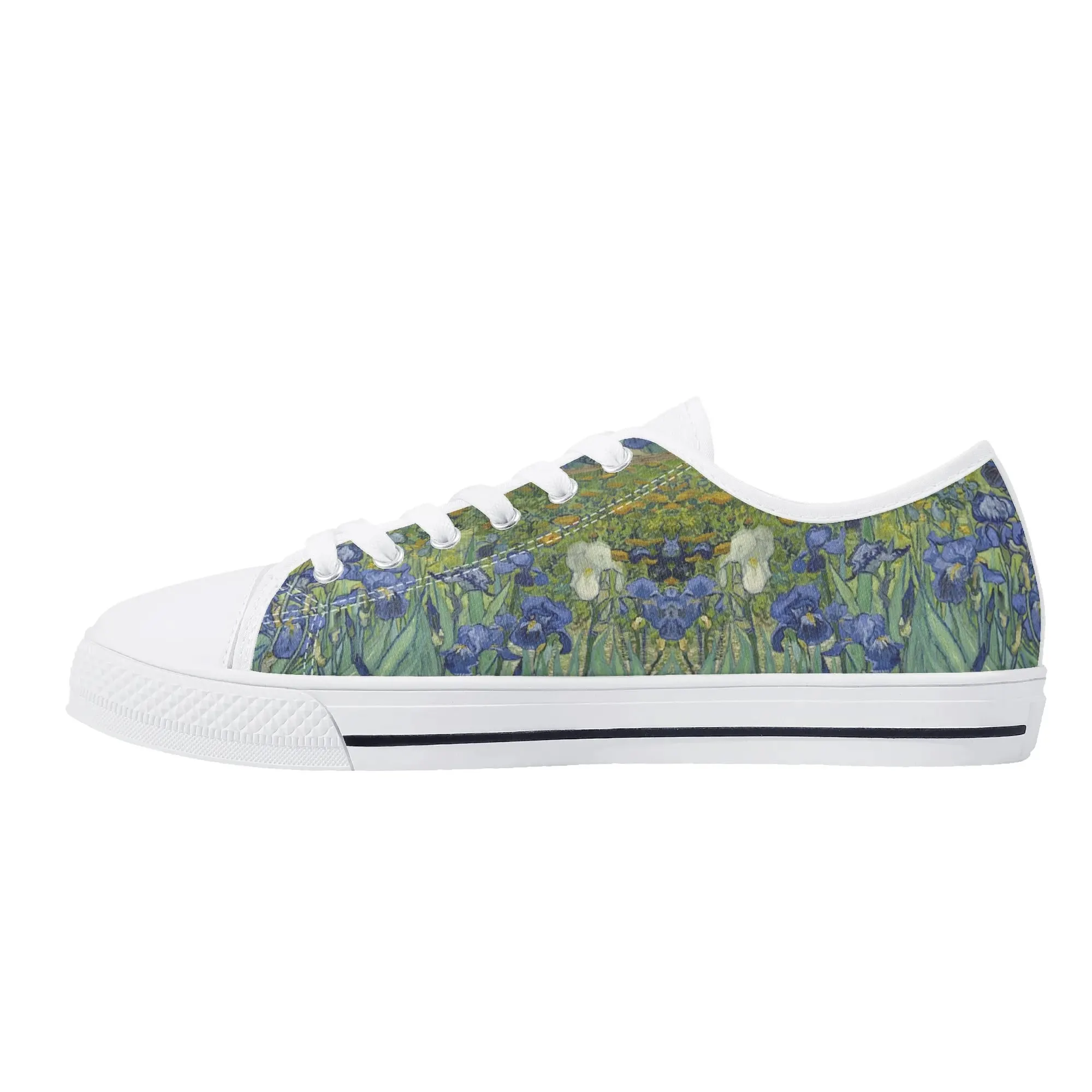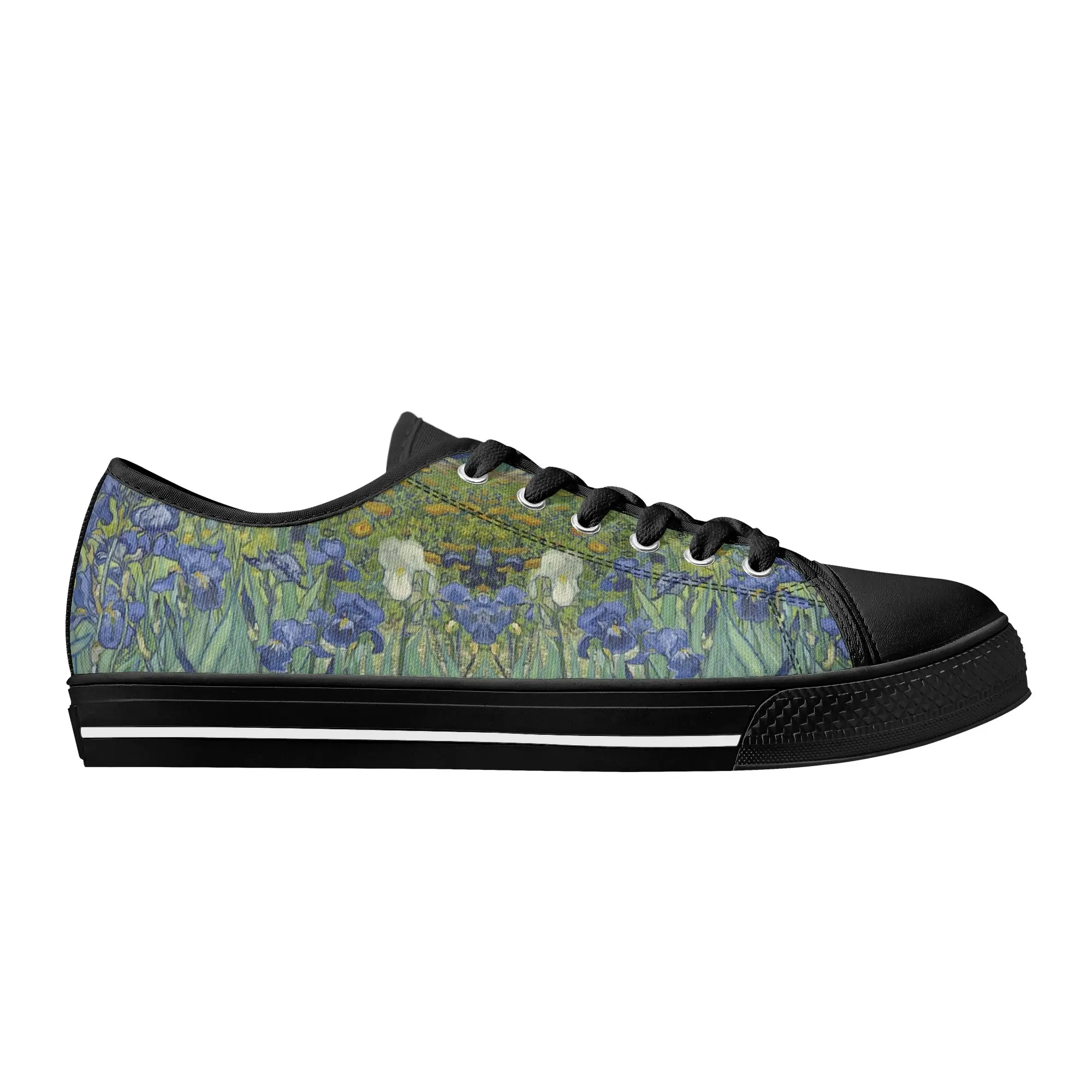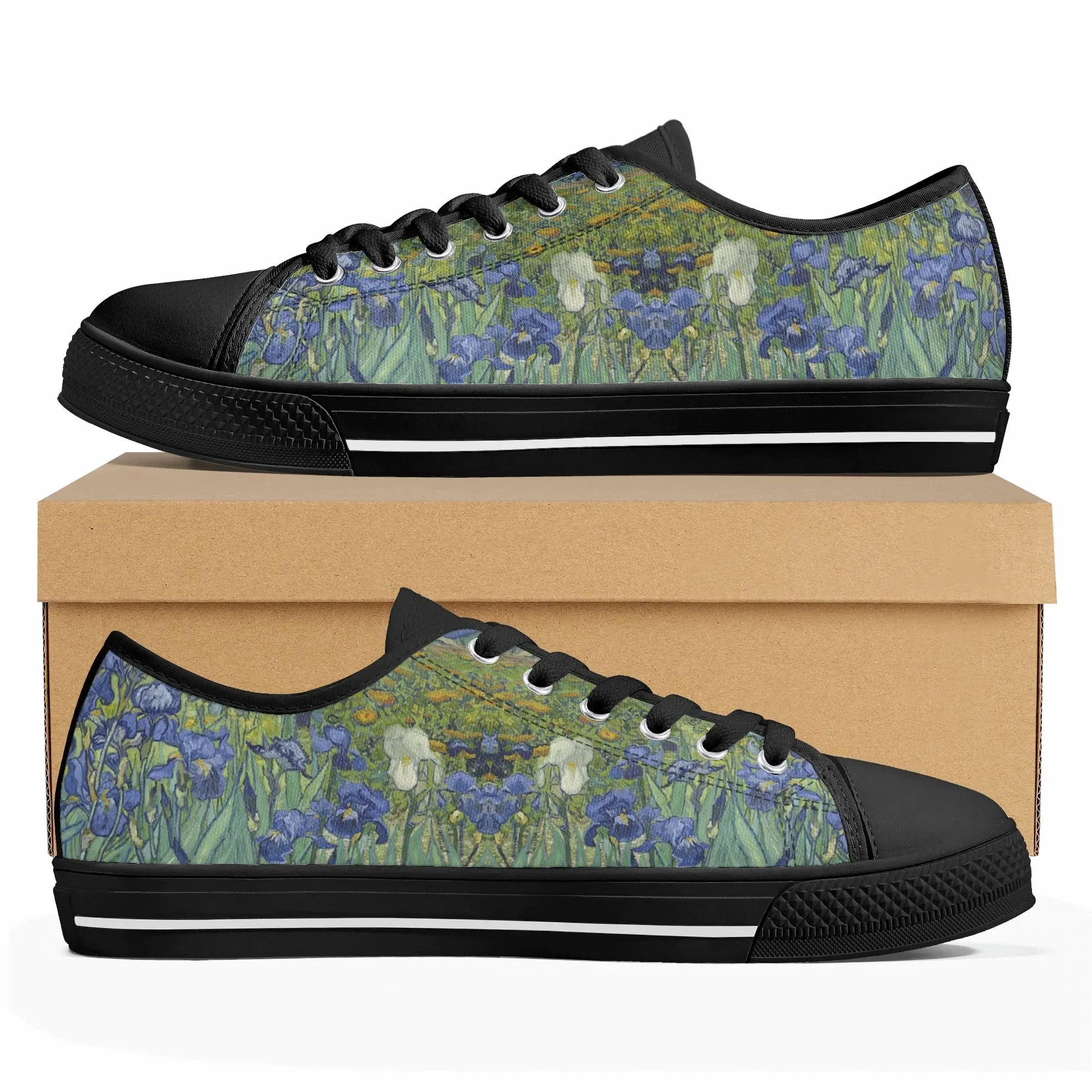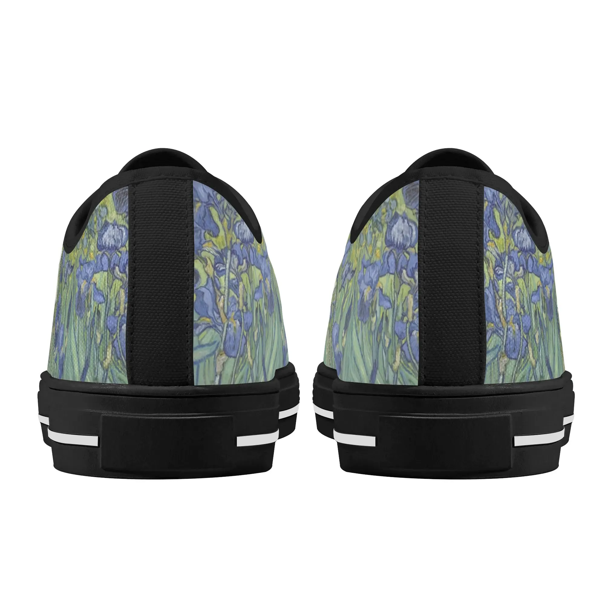 Van Gogh Irises Low Top Canvas Shoes, Artistic Blue Flower Platform Sneakers, Post Impressionism Aesthetic Footwear, Art Lover Gift