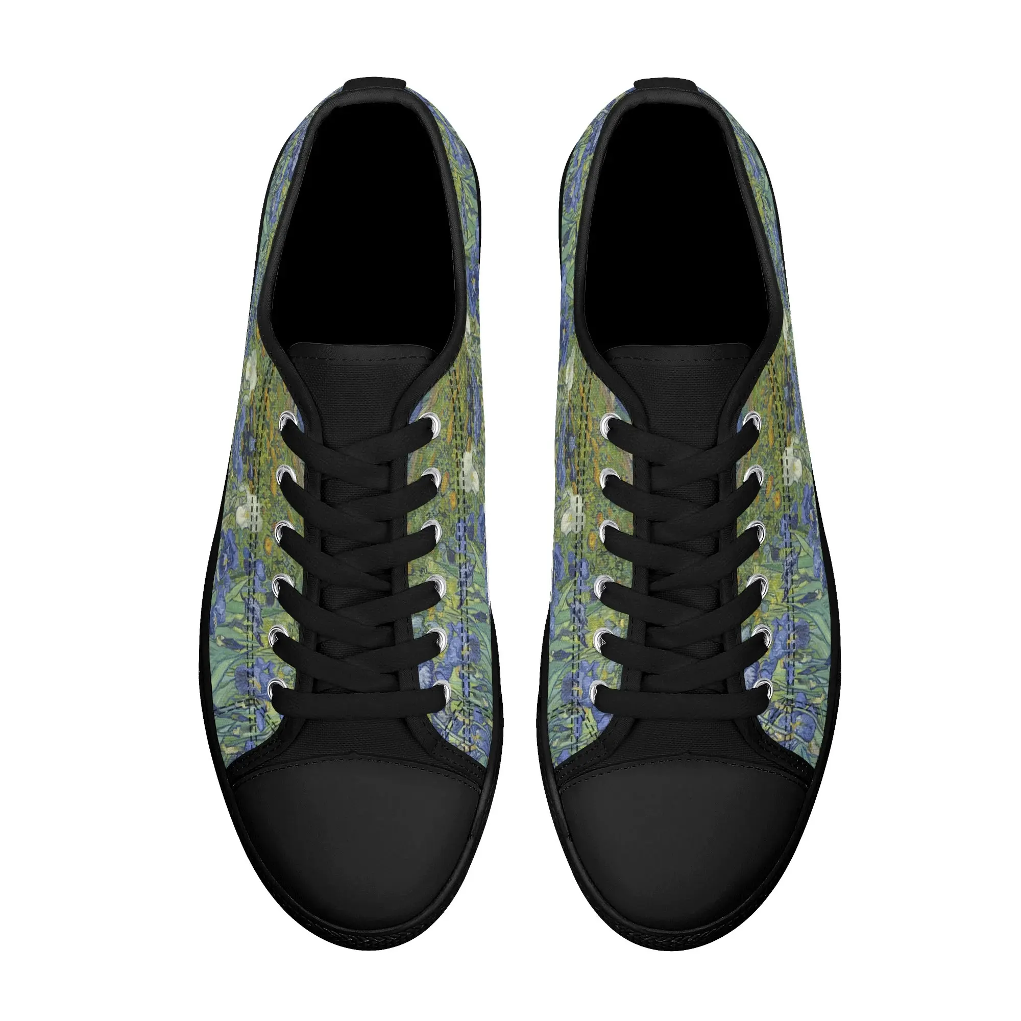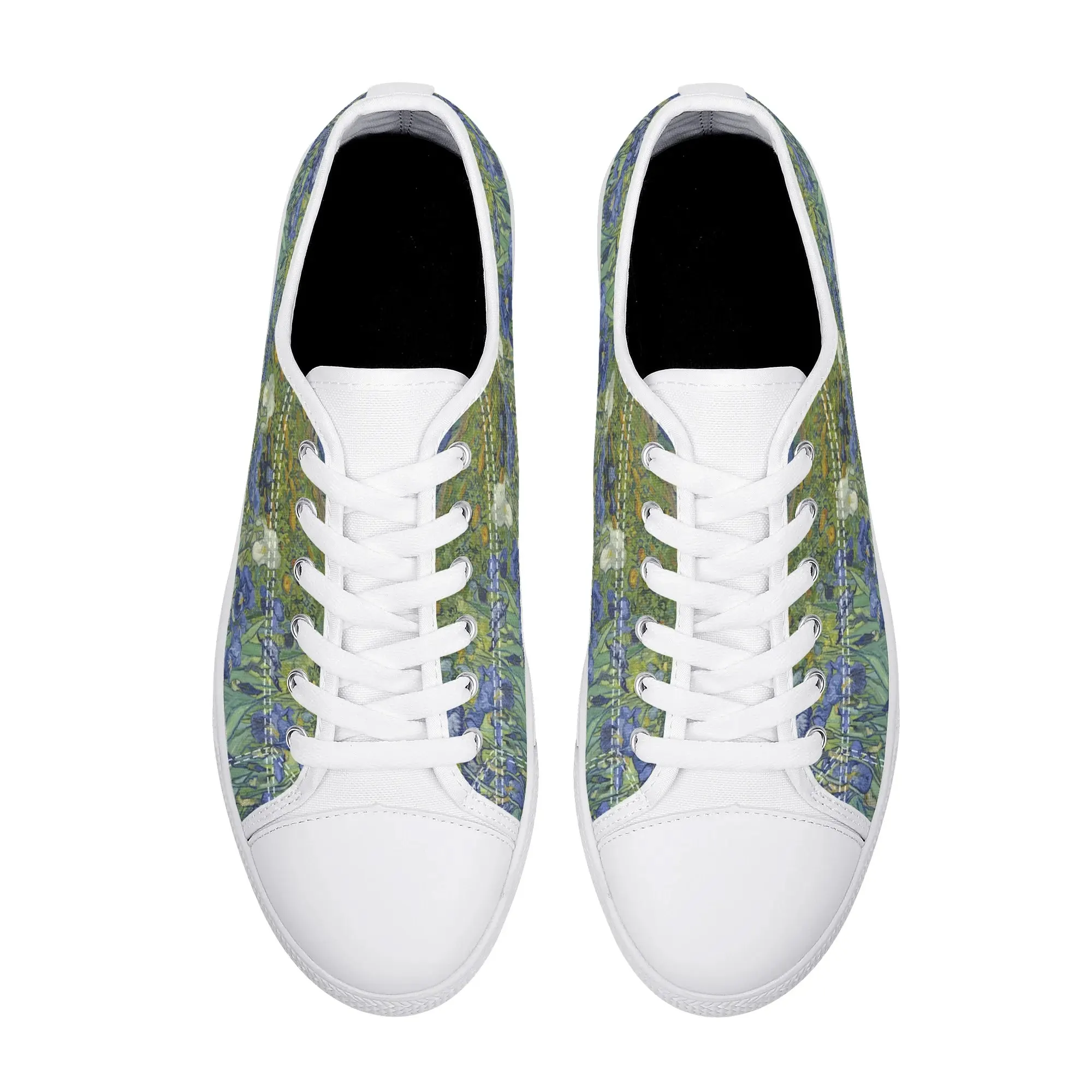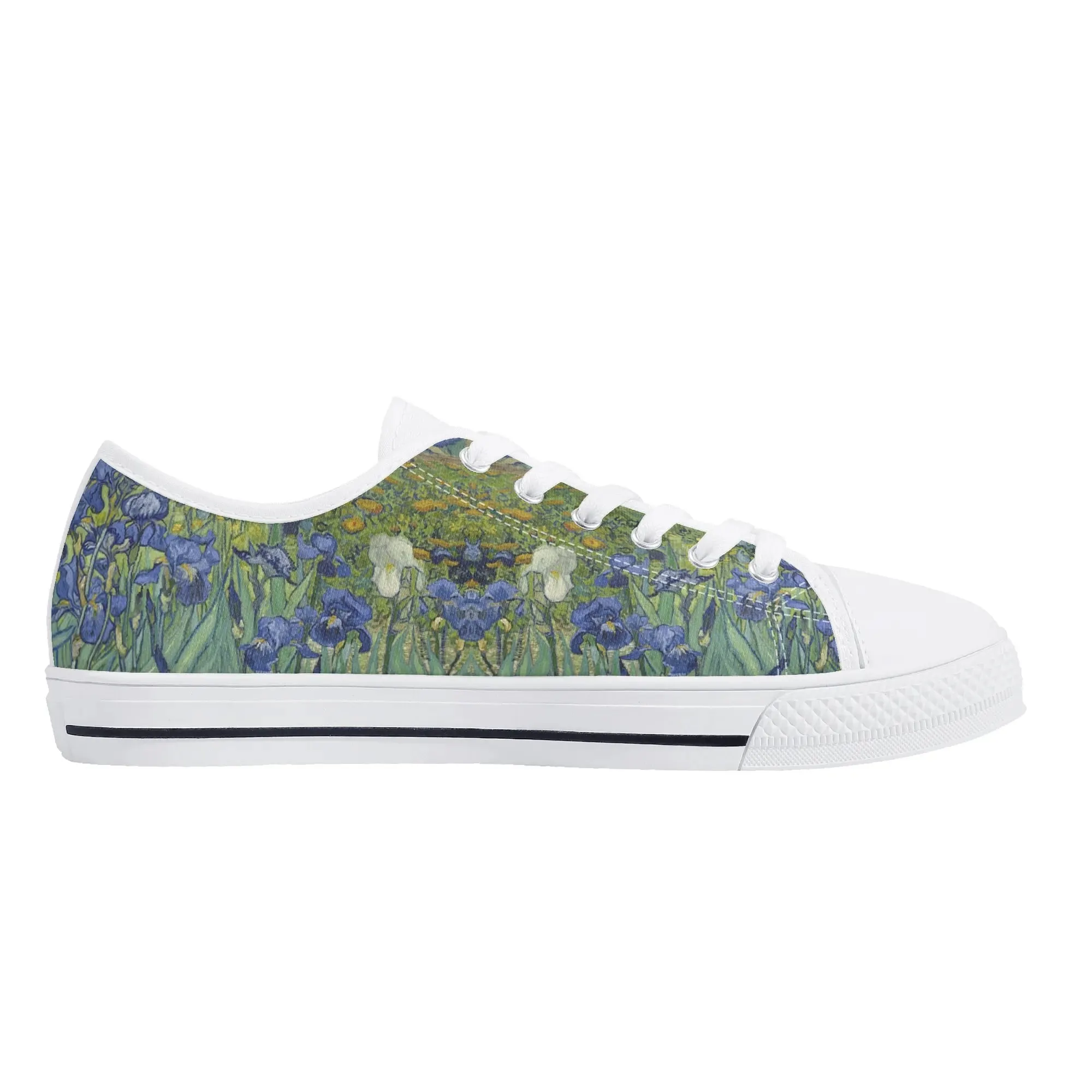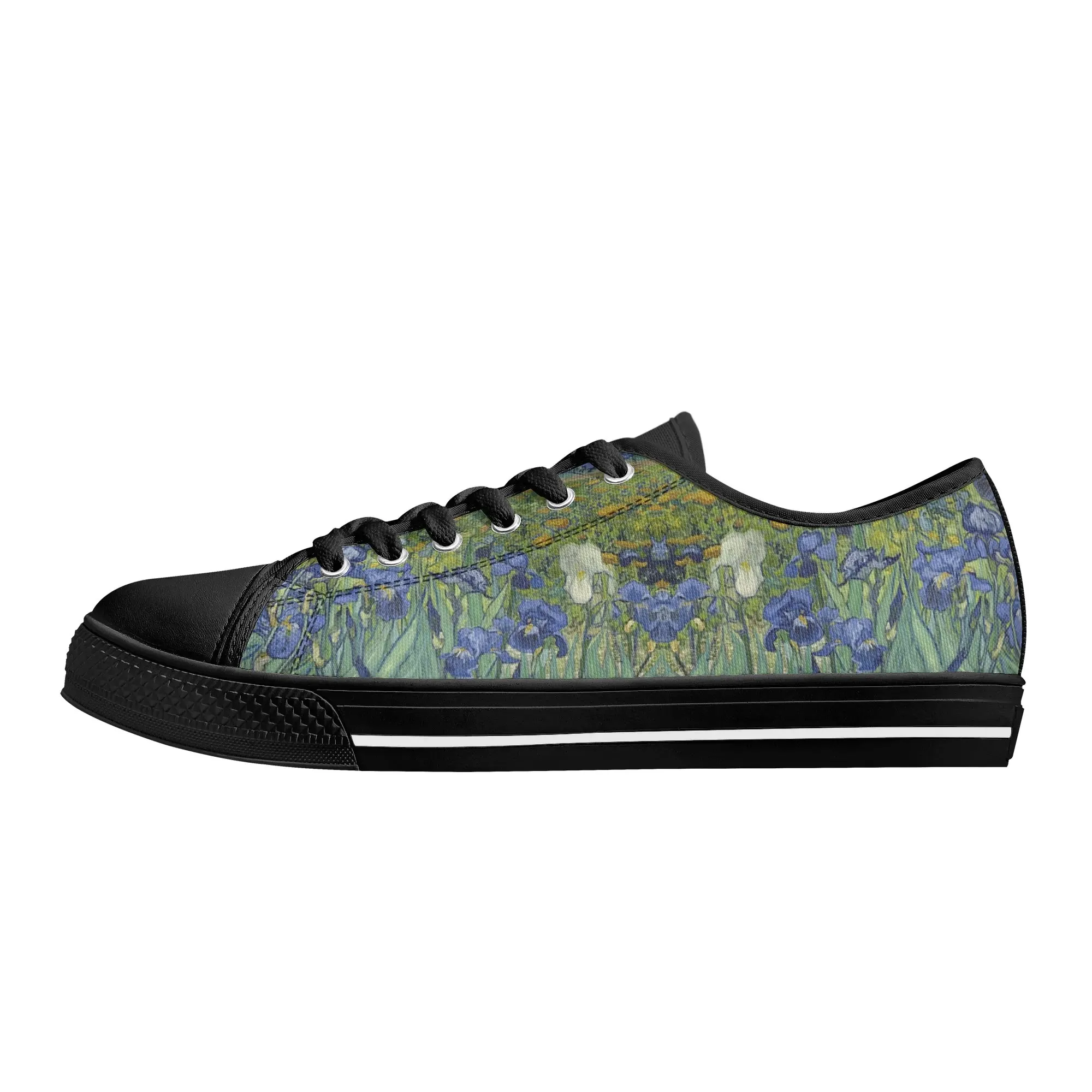 Van Gogh Irises Low Top Canvas Shoes, Artistic Blue Flower Platform Sneakers, Post Impressionism Aesthetic Footwear, Art Lover Gift