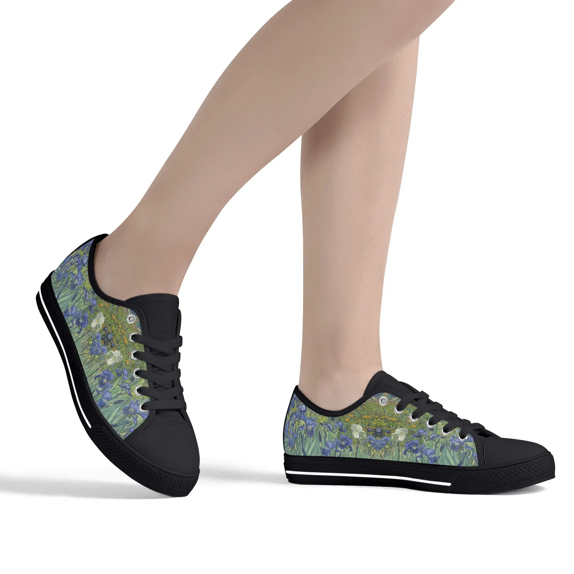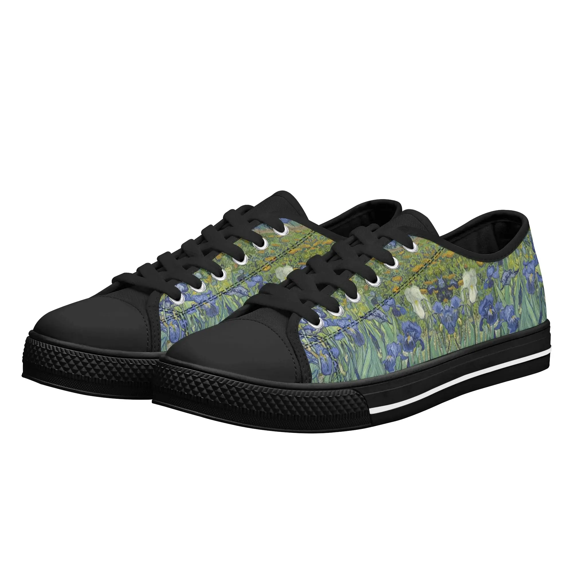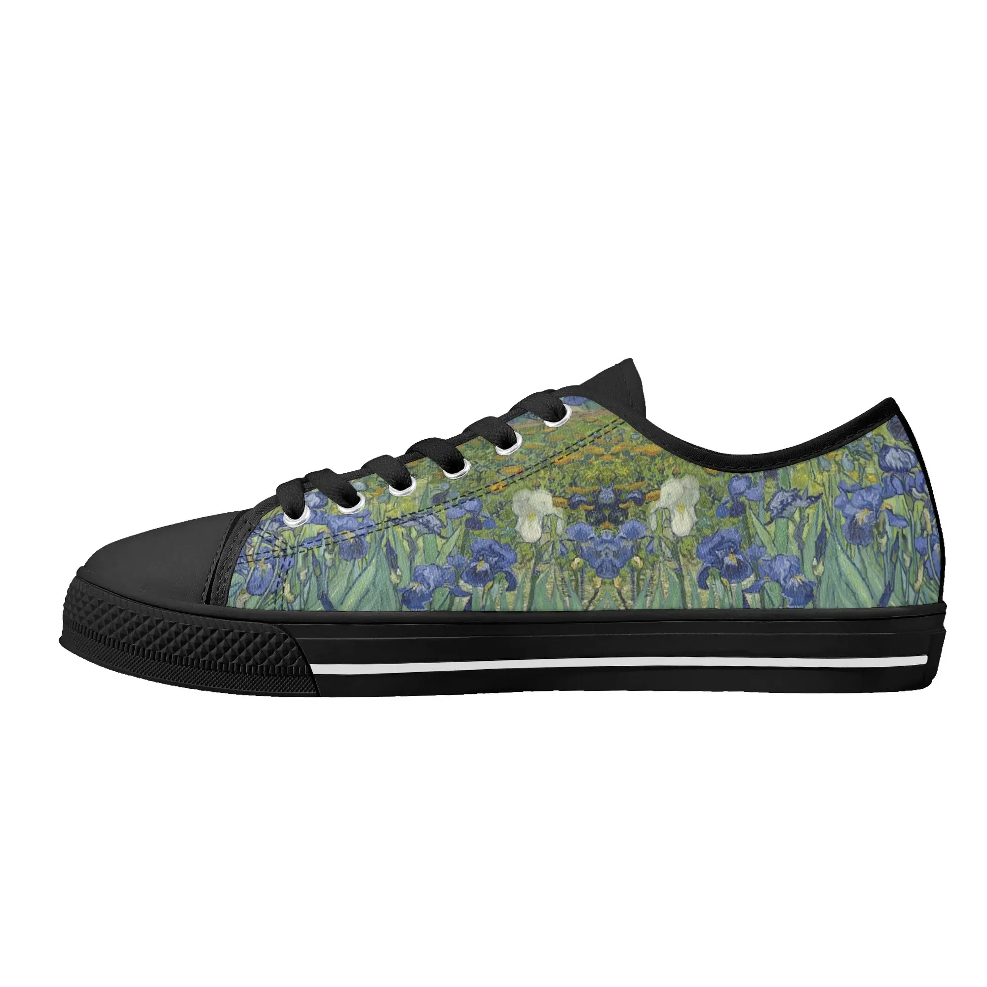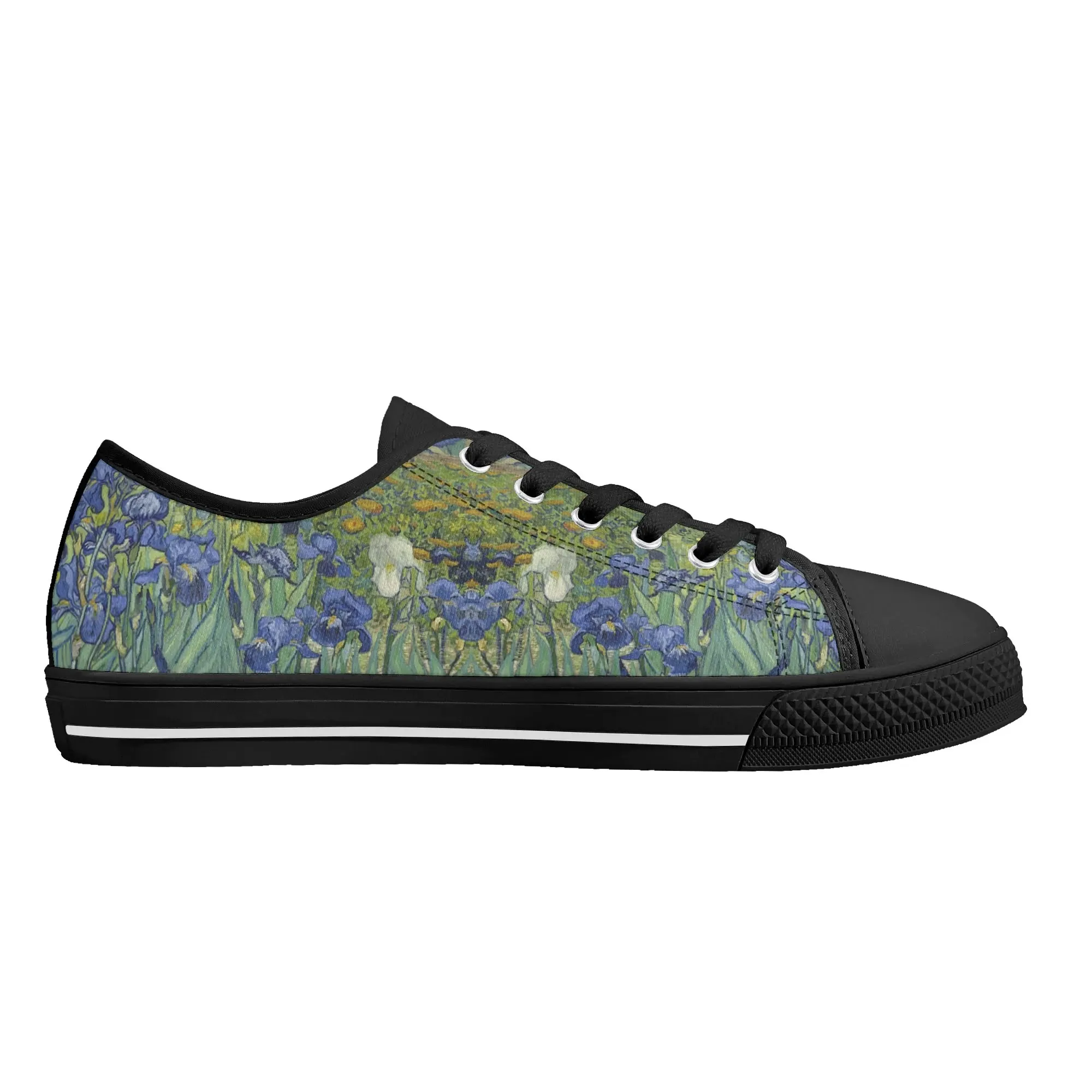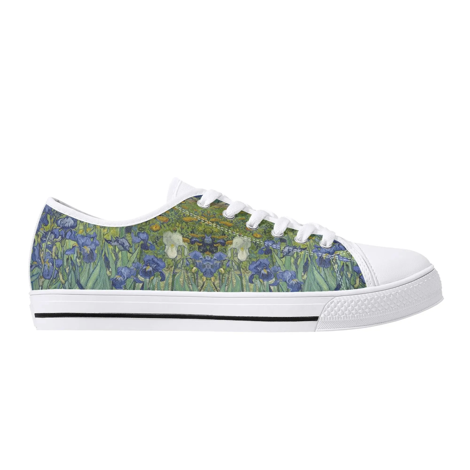 Van Gogh Irises Low Top Canvas Shoes, Artistic Blue Flower Platform Sneakers, Post Impressionism Aesthetic Footwear, Art Lover Gift
