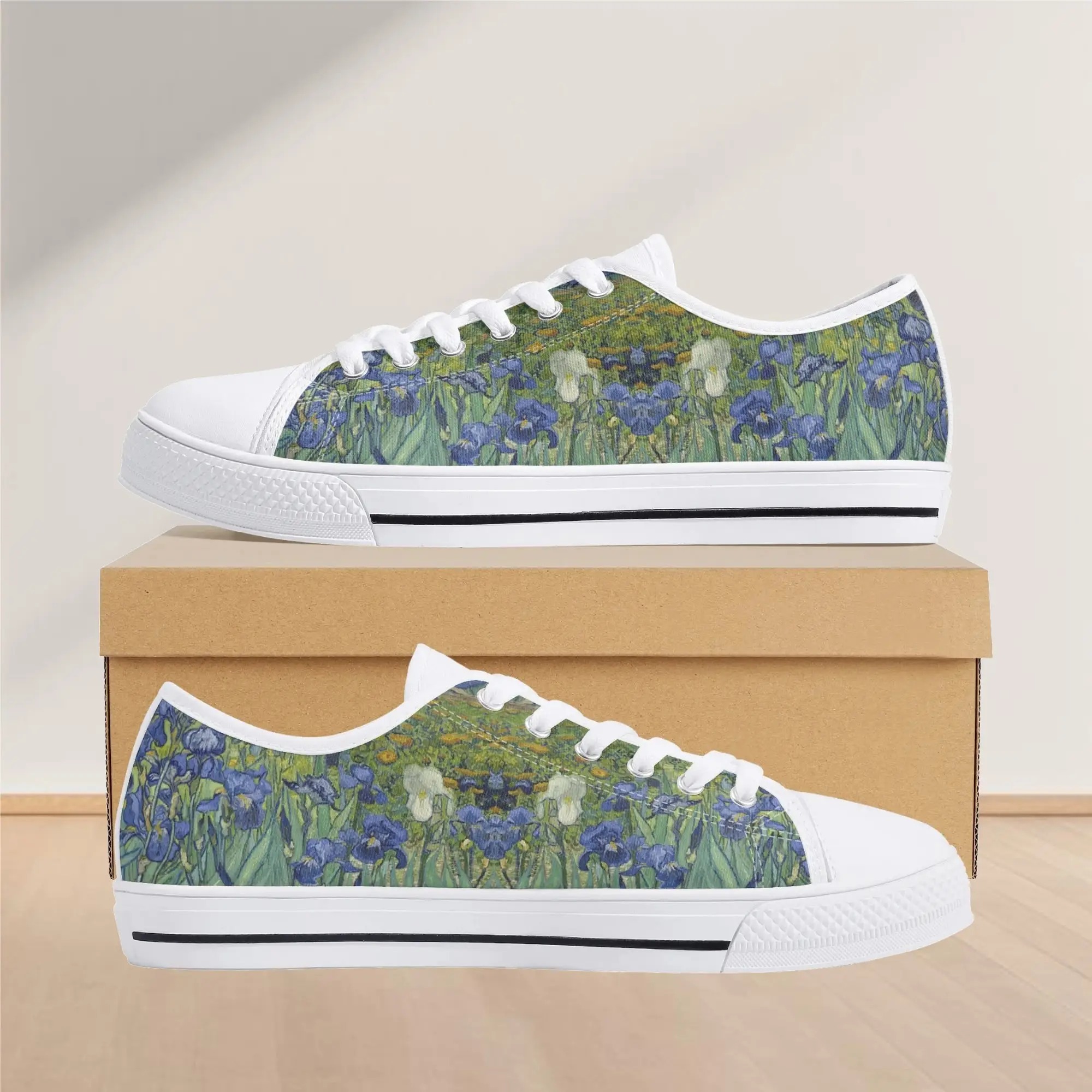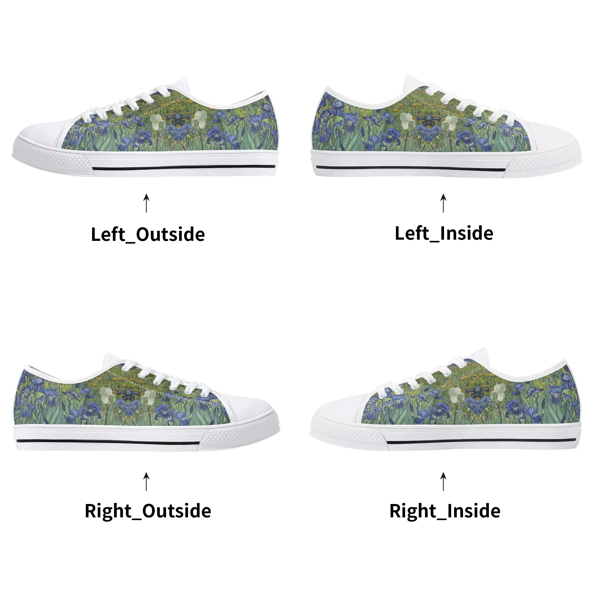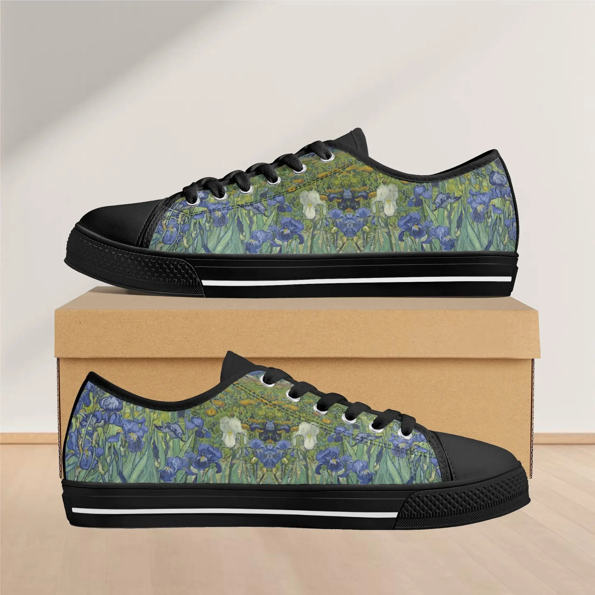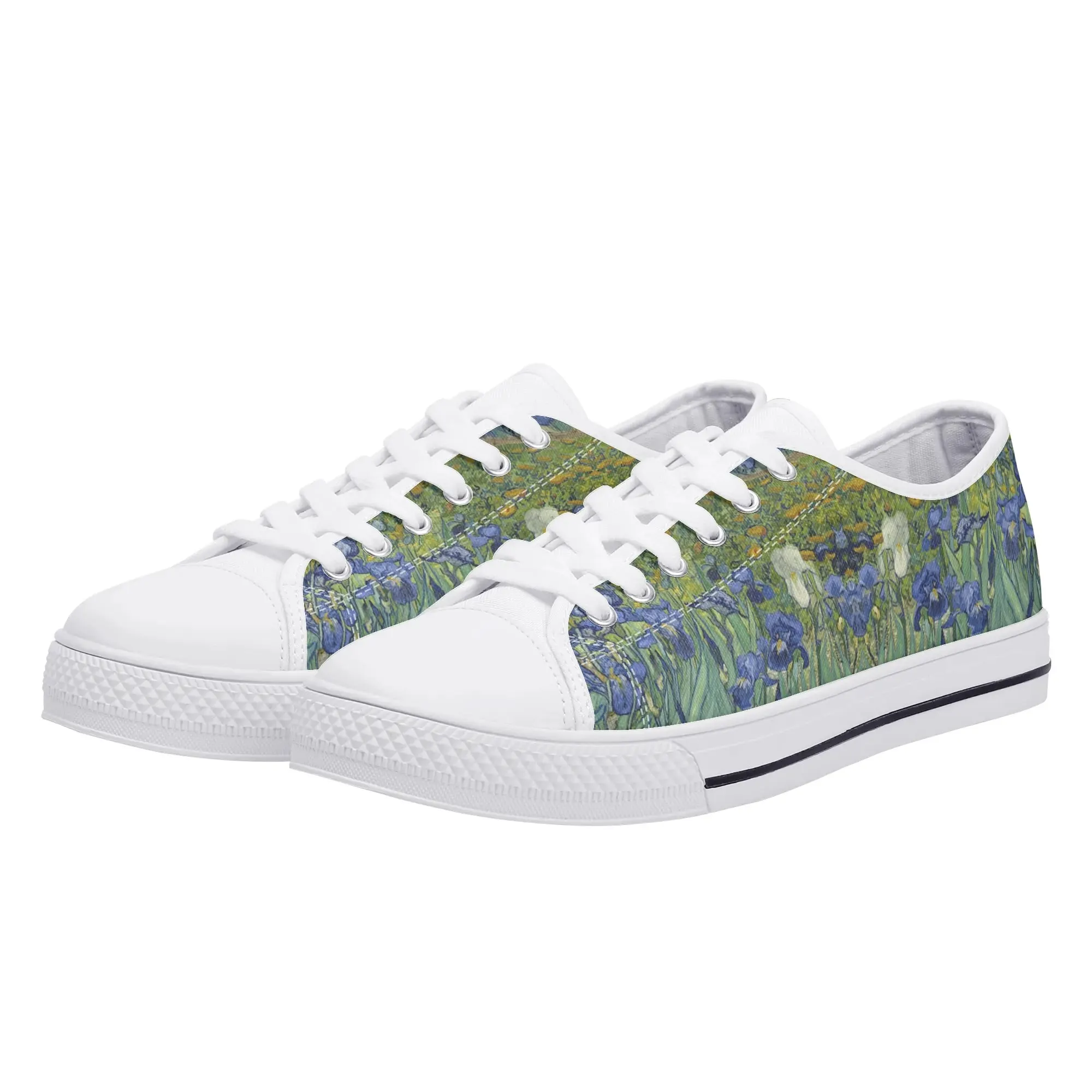 Van Gogh Irises Low Top Canvas Shoes, Artistic Blue Flower Platform Sneakers, Post Impressionism Aesthetic Footwear, Art Lover Gift