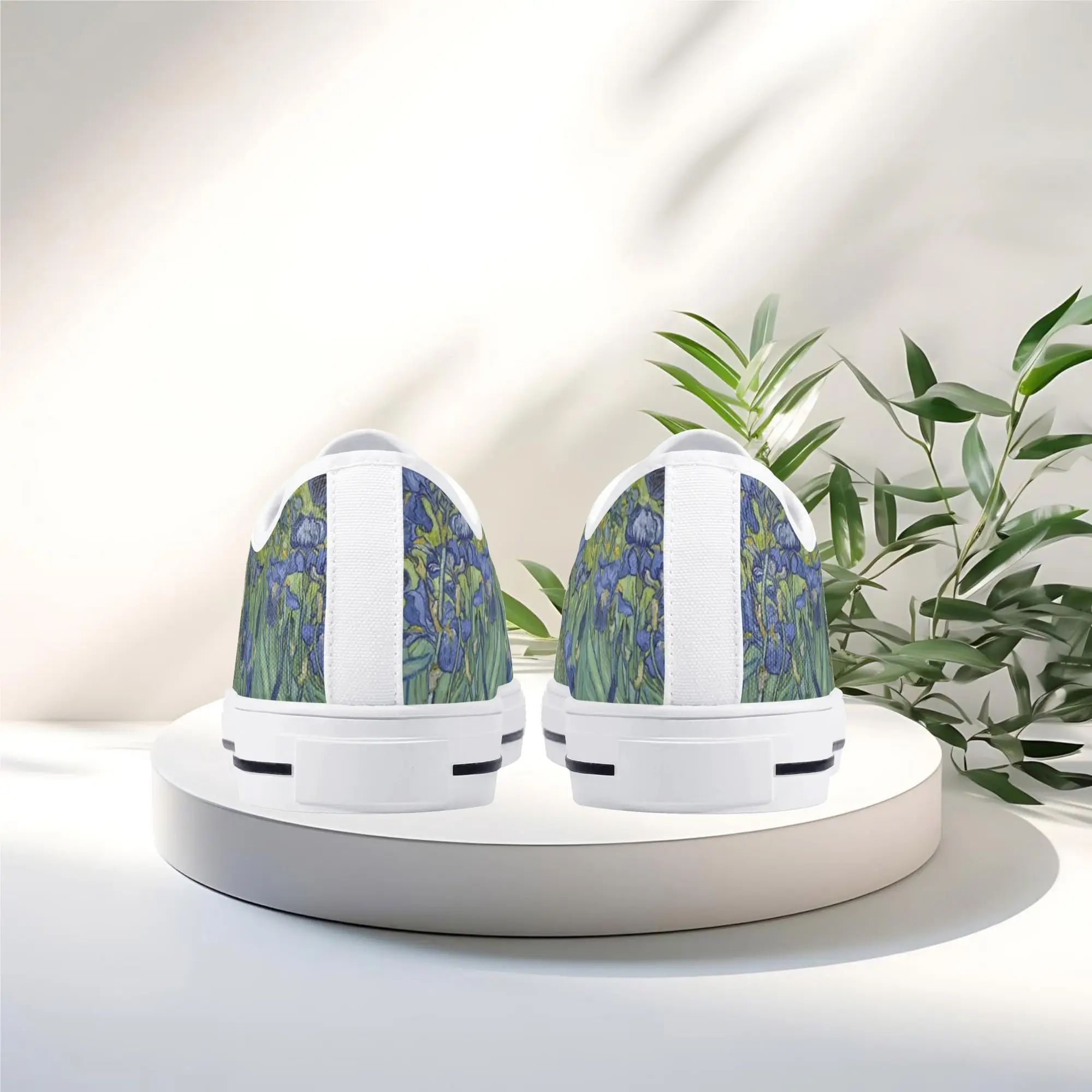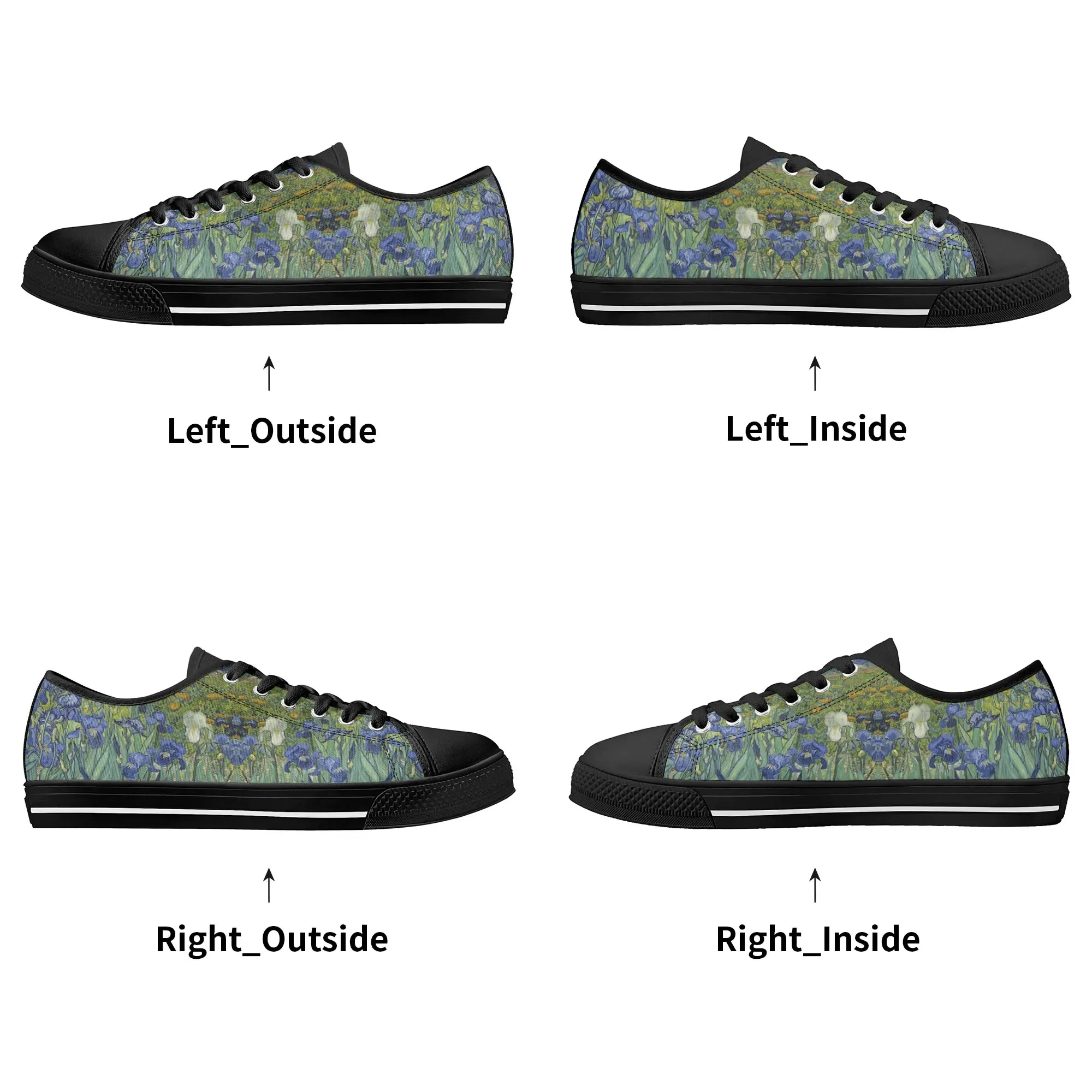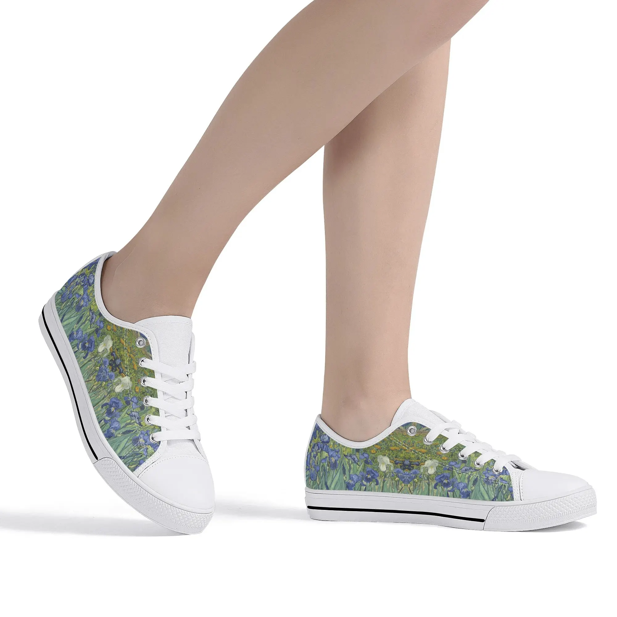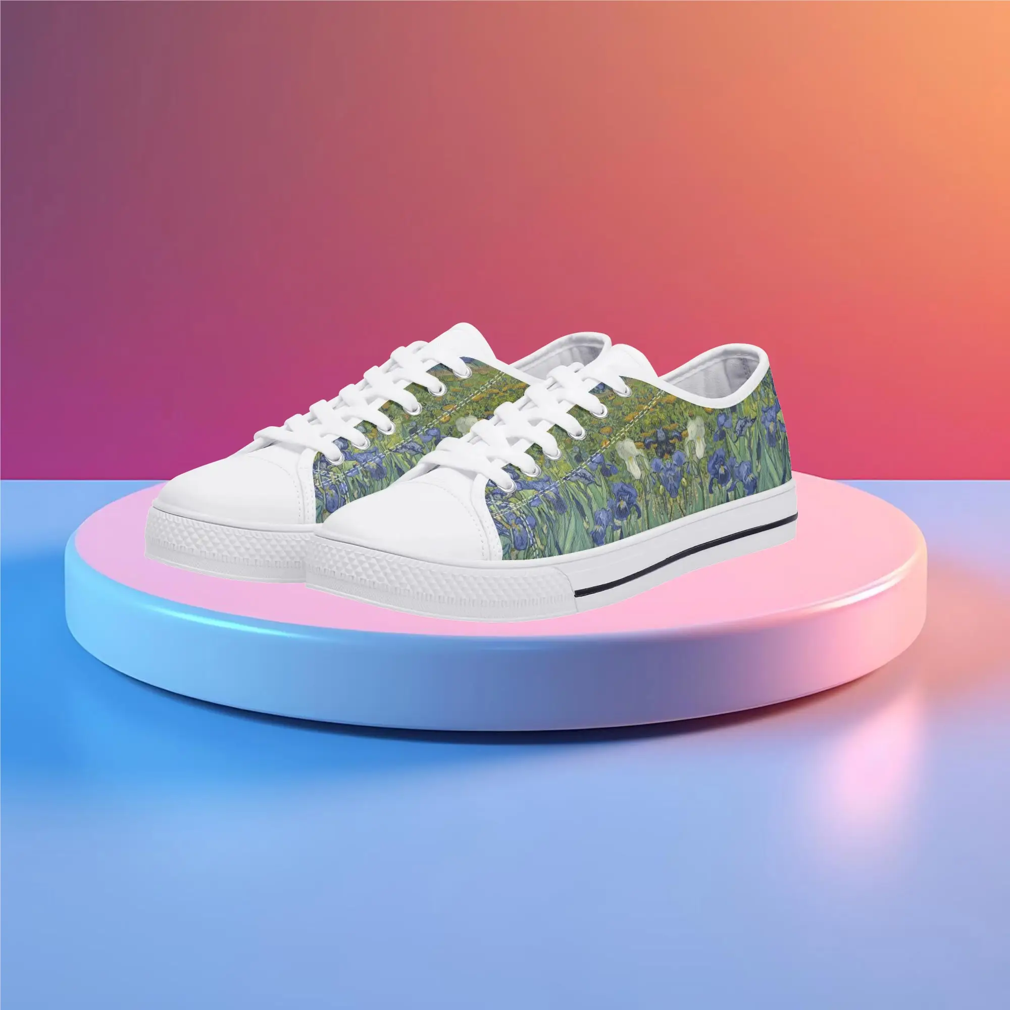 Van Gogh Irises Low Top Canvas Shoes, Artistic Blue Flower Platform Sneakers, Post Impressionism Aesthetic Footwear, Art Lover Gift