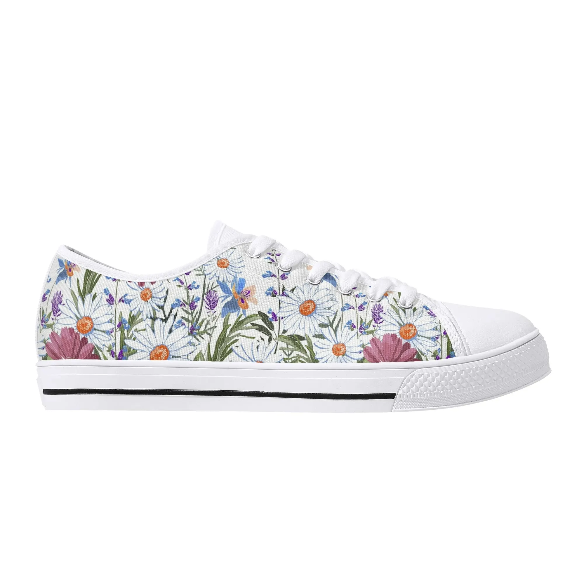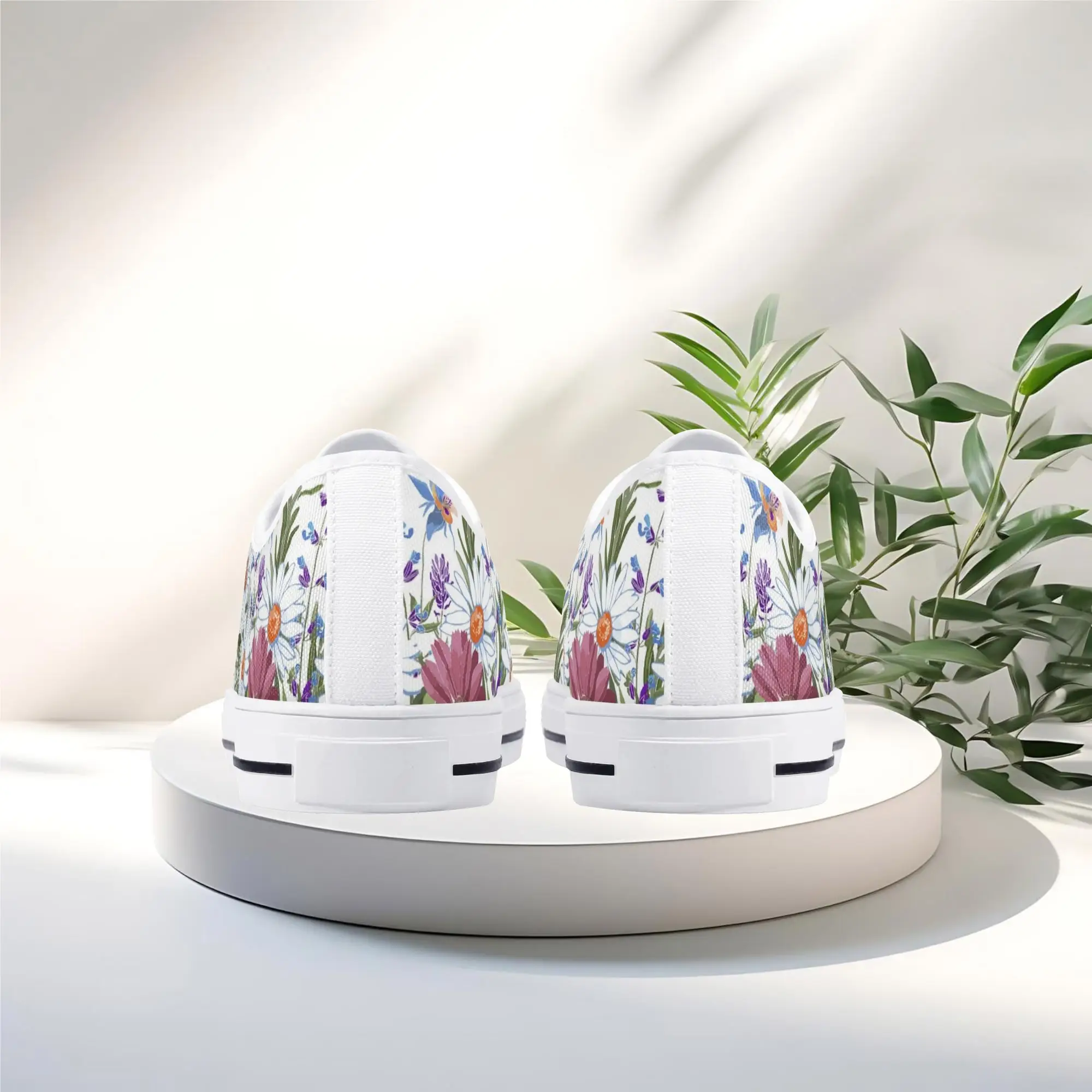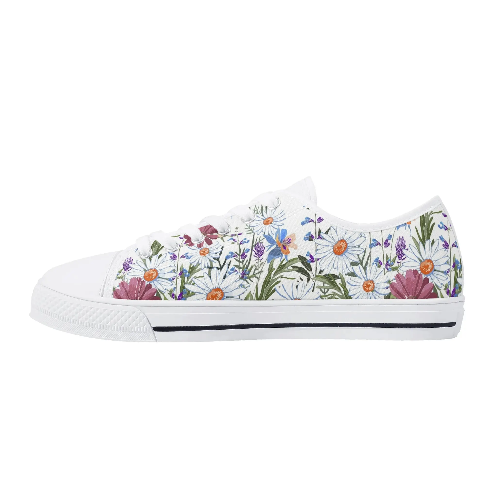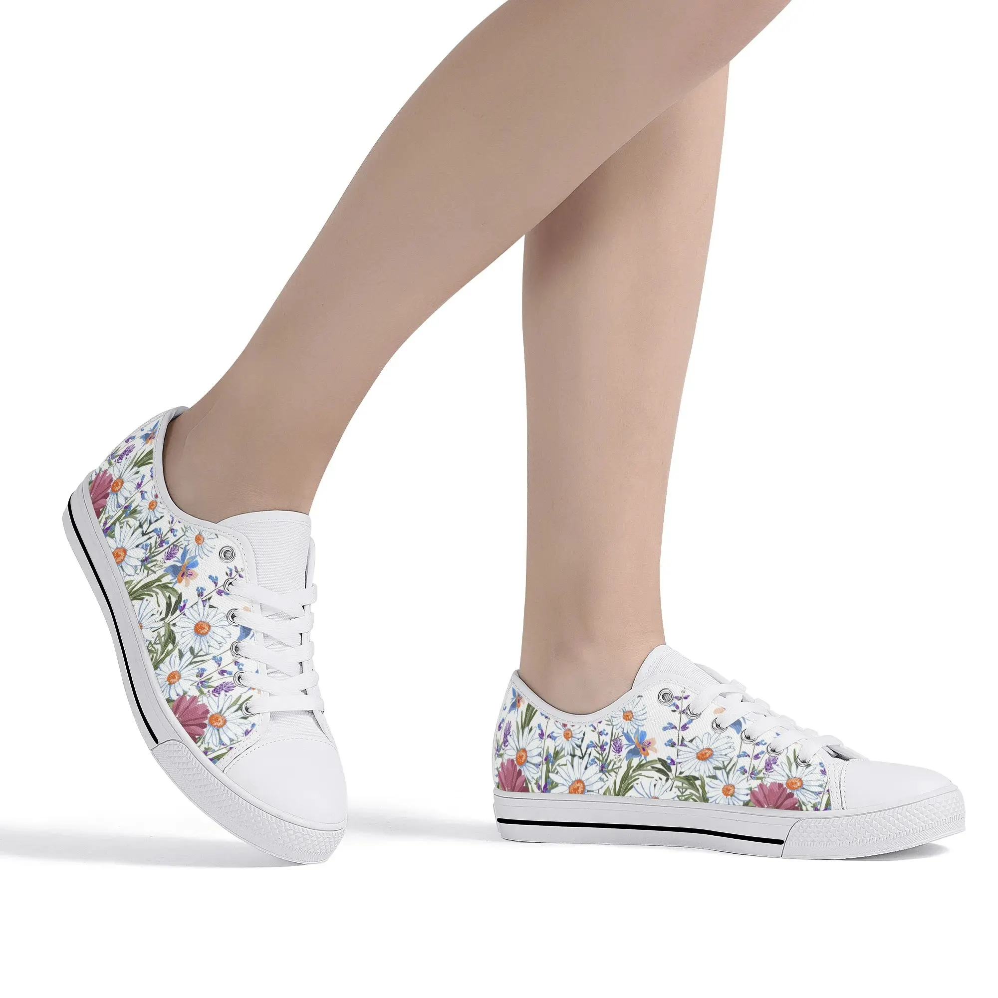 Wildflower Daisy Low Top Canvas Shoes, Cottagecore Garden Aesthetic Sneakers, White Floral Print Shoe, Spring Summer Footwear Gift