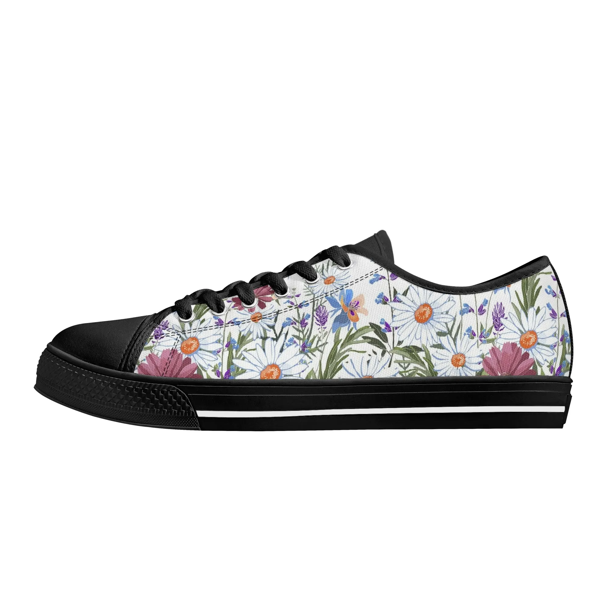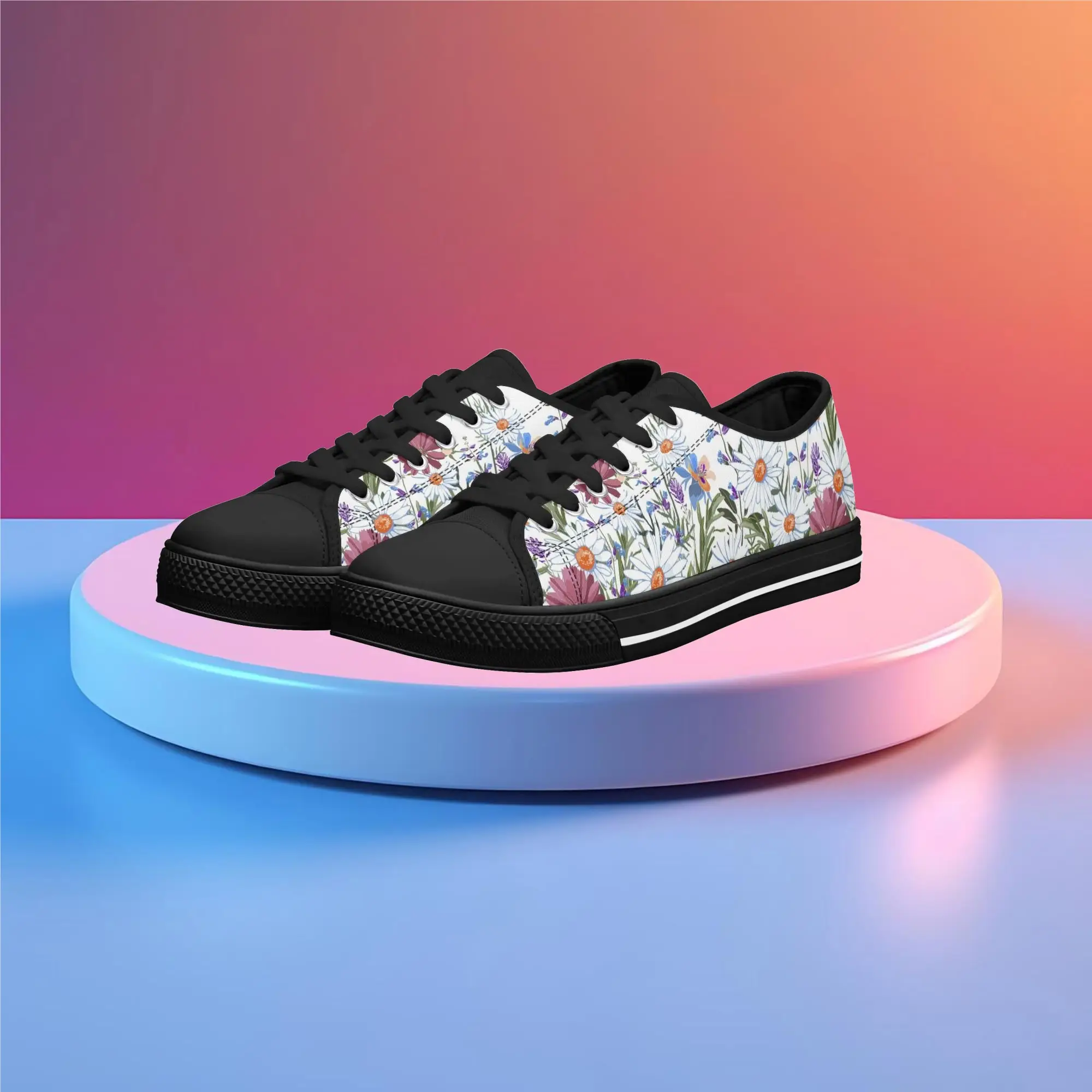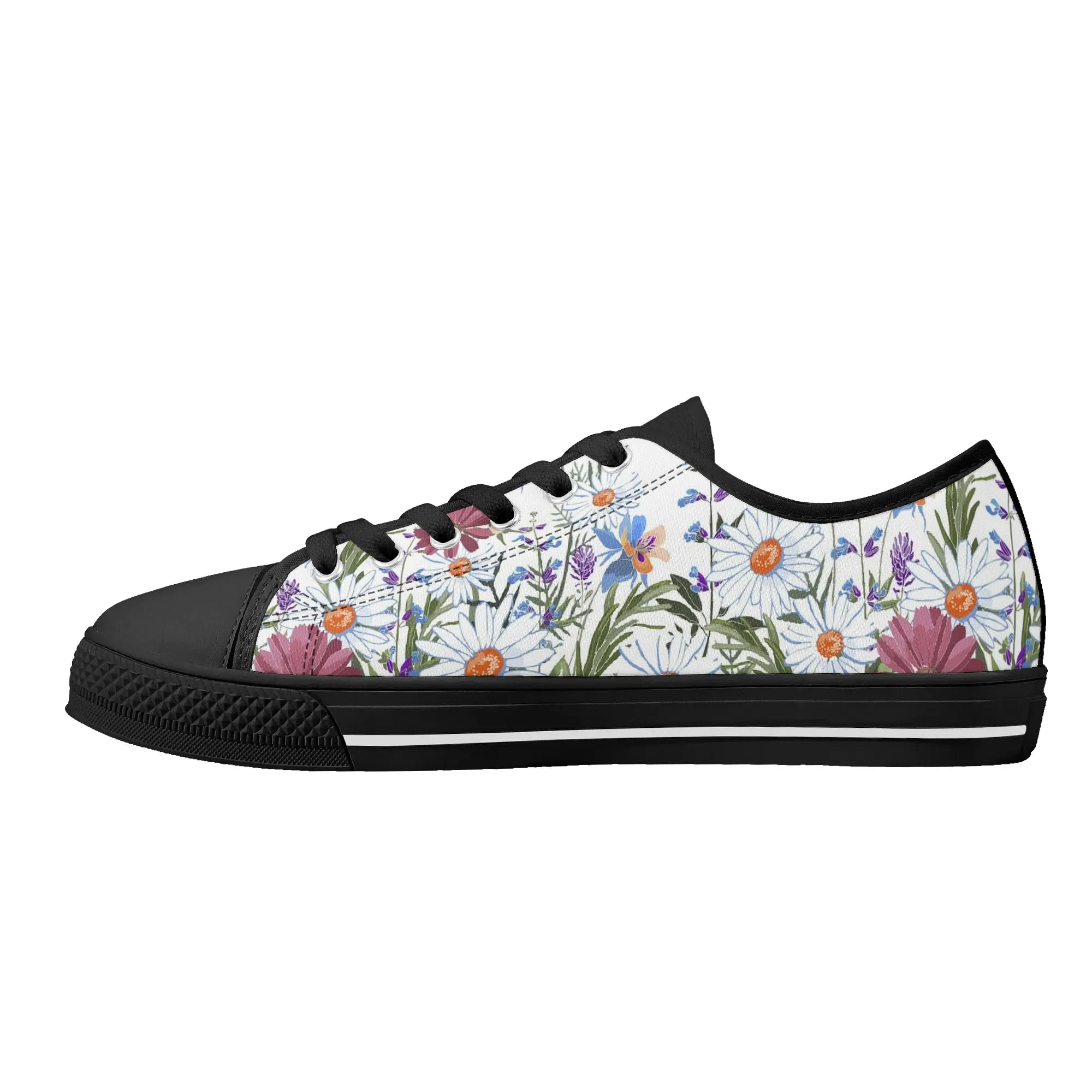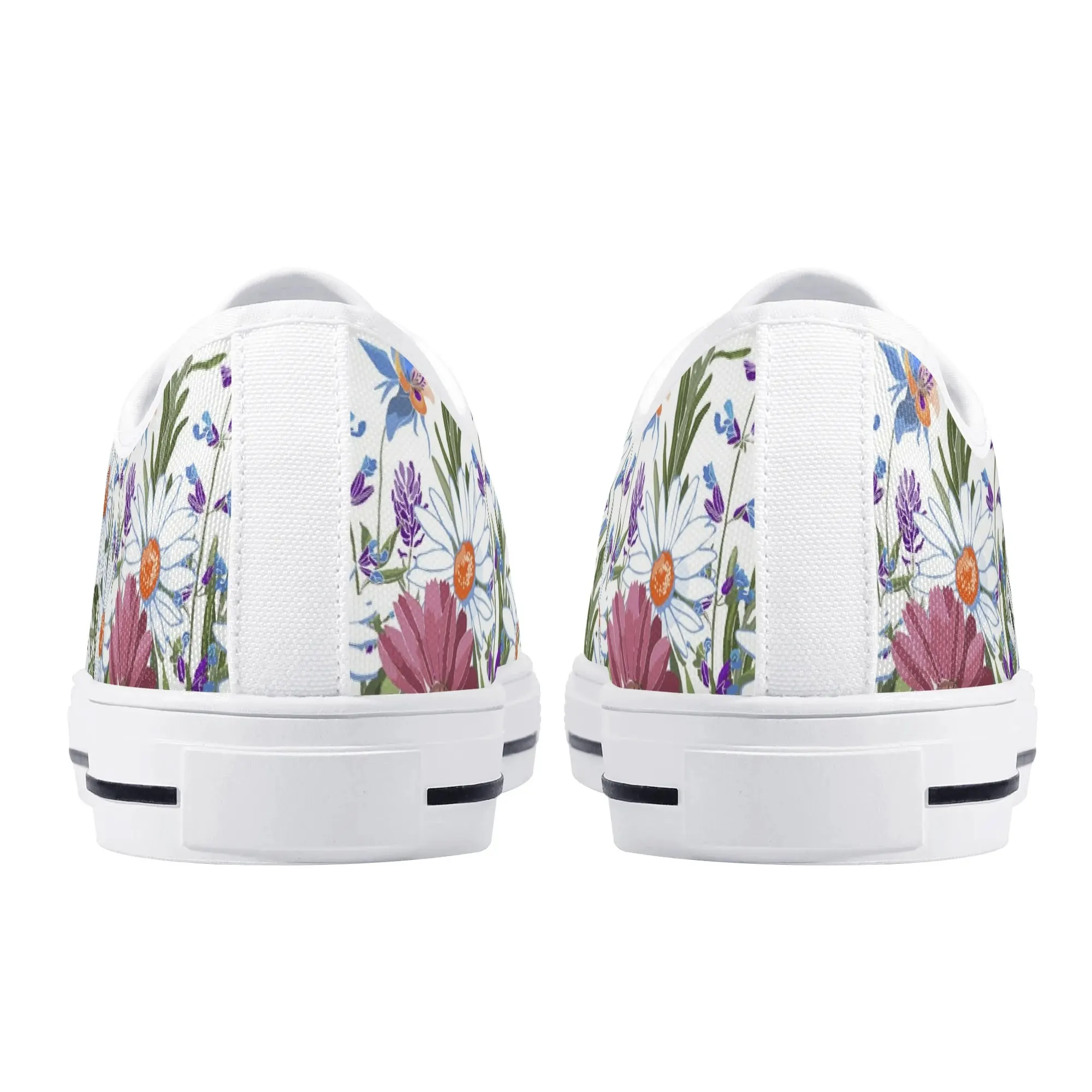 Wildflower Daisy Low Top Canvas Shoes, Cottagecore Garden Aesthetic Sneakers, White Floral Print Shoe, Spring Summer Footwear Gift