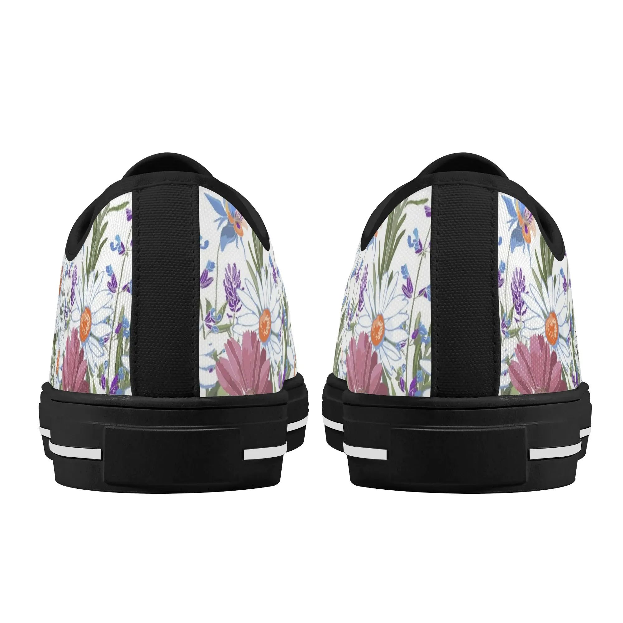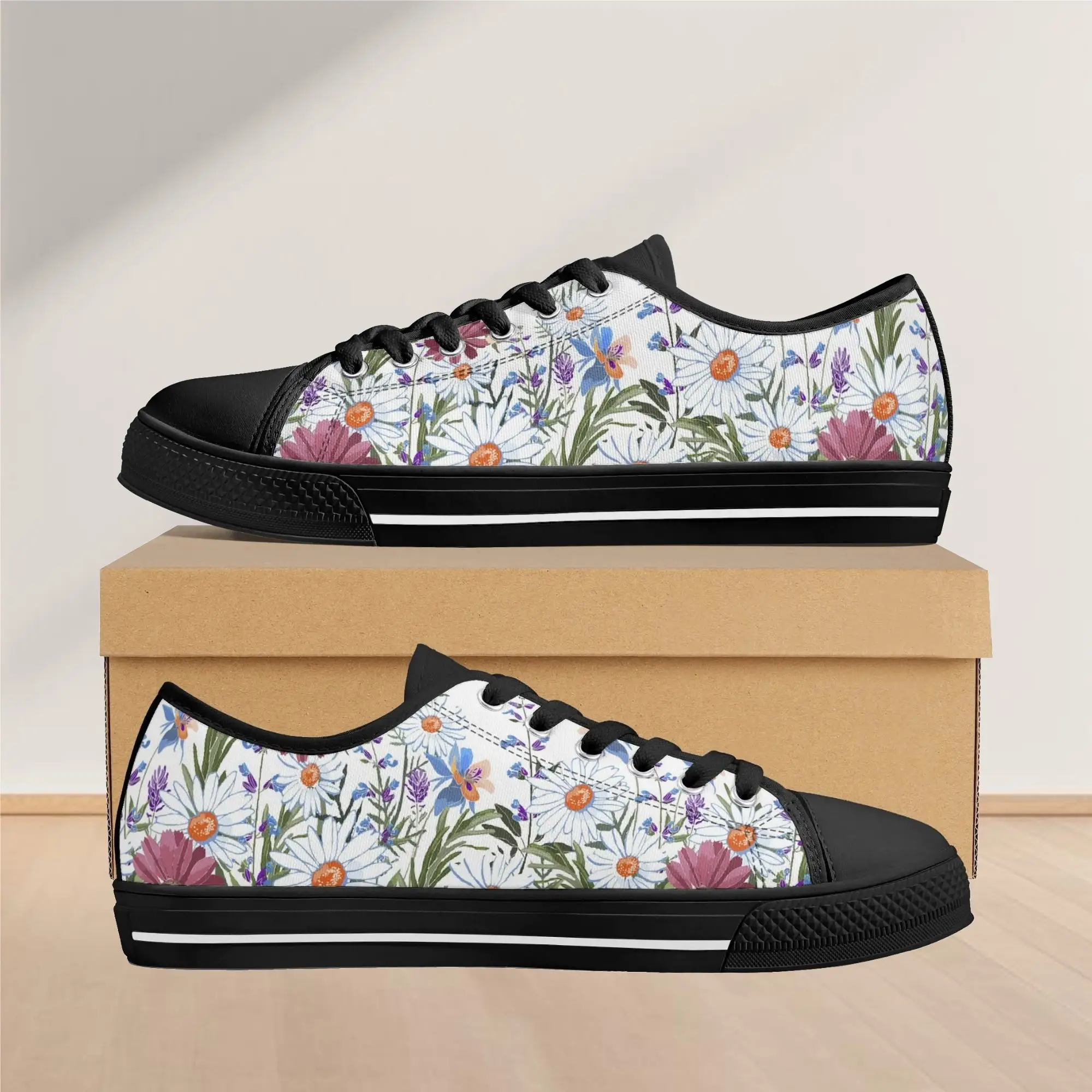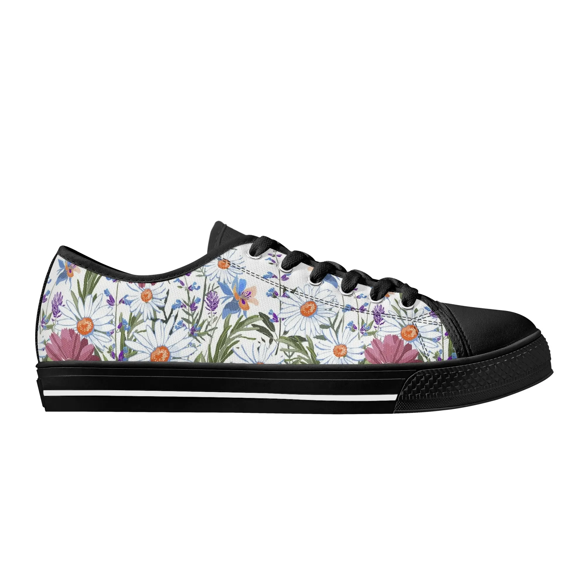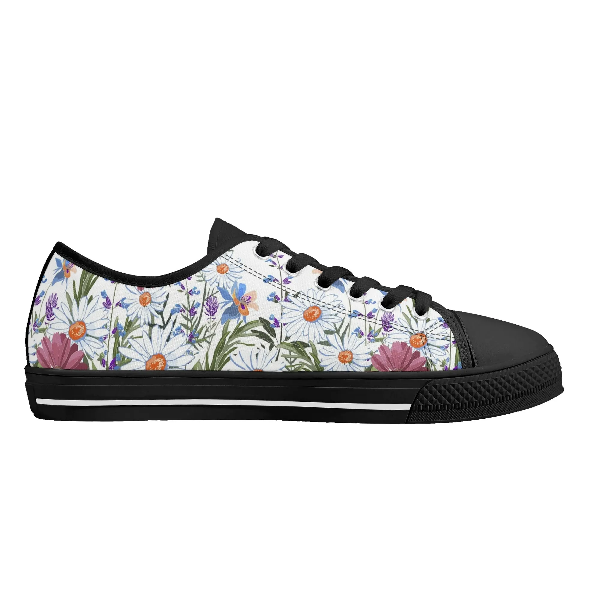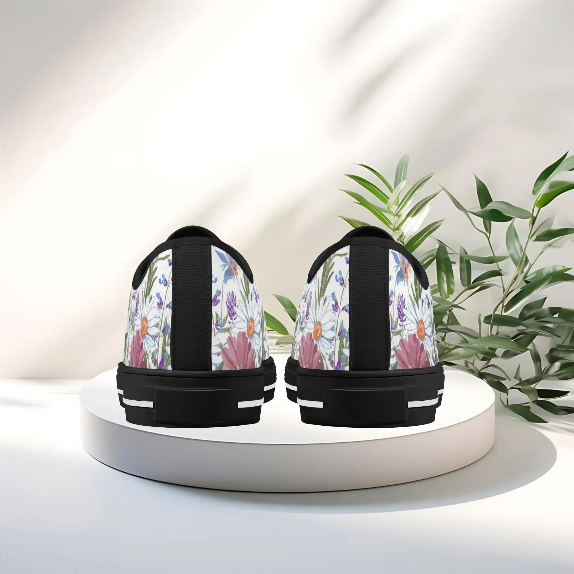 Wildflower Daisy Low Top Canvas Shoes, Cottagecore Garden Aesthetic Sneakers, White Floral Print Shoe, Spring Summer Footwear Gift