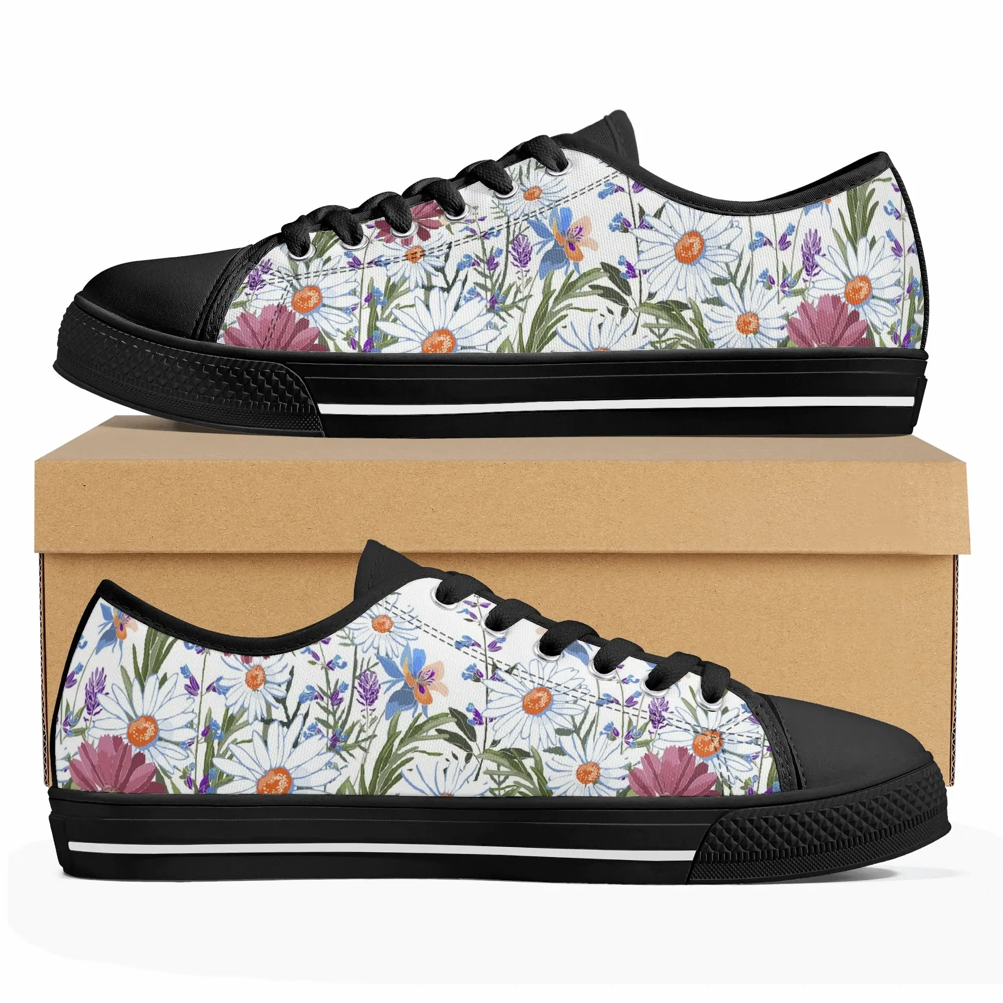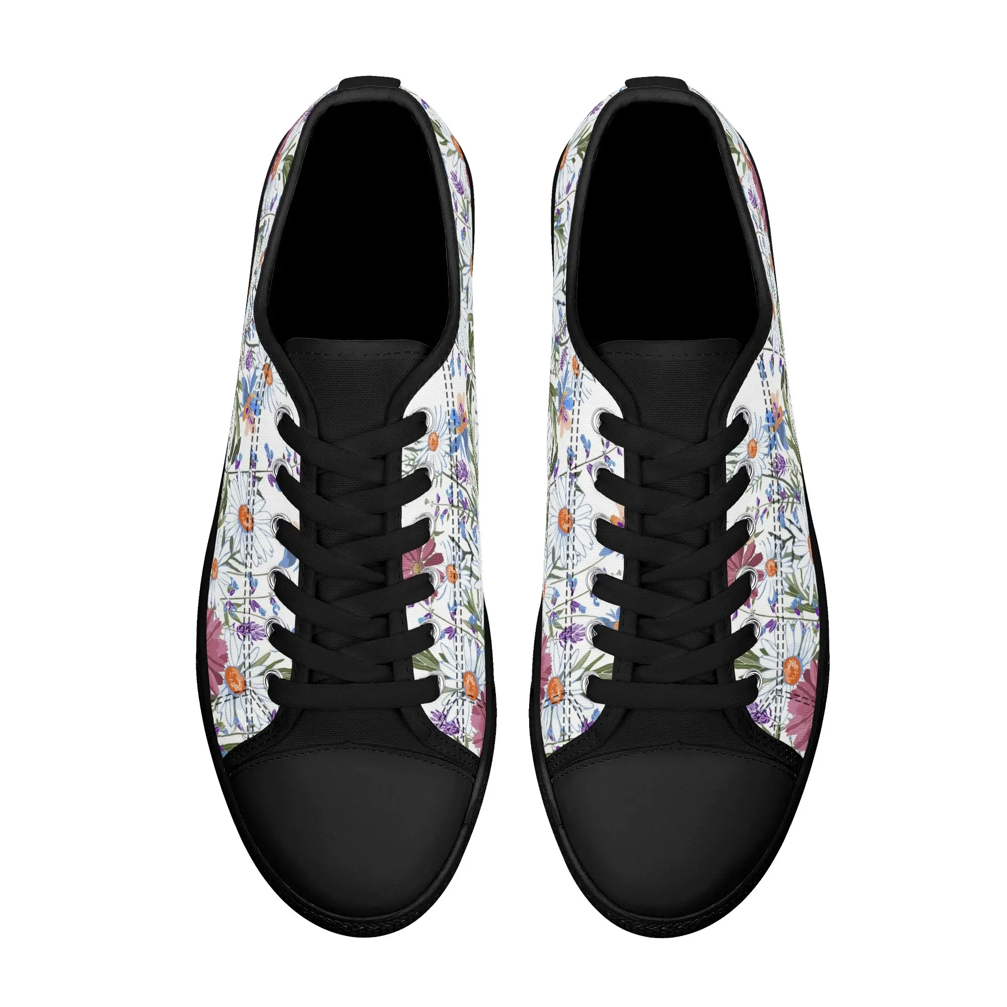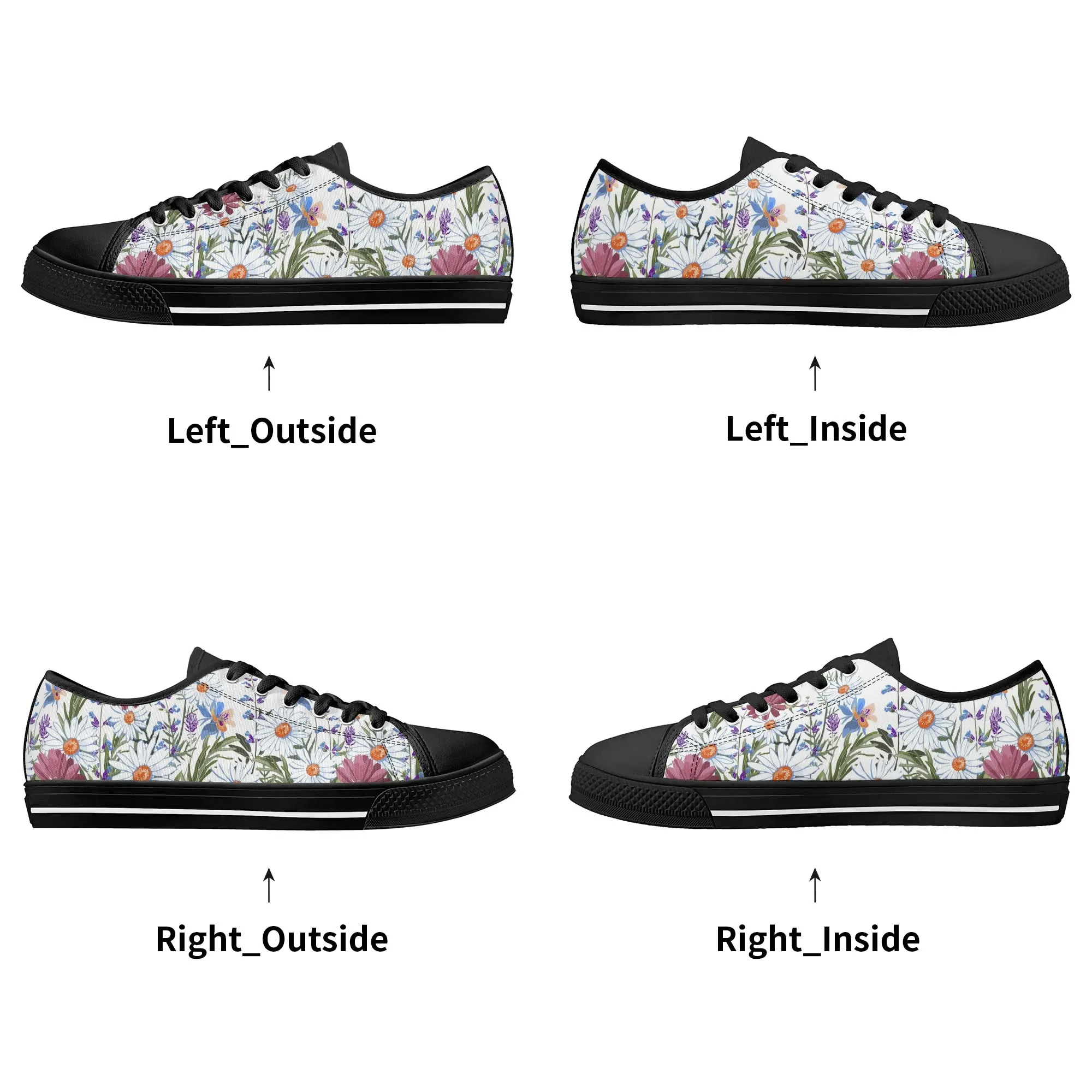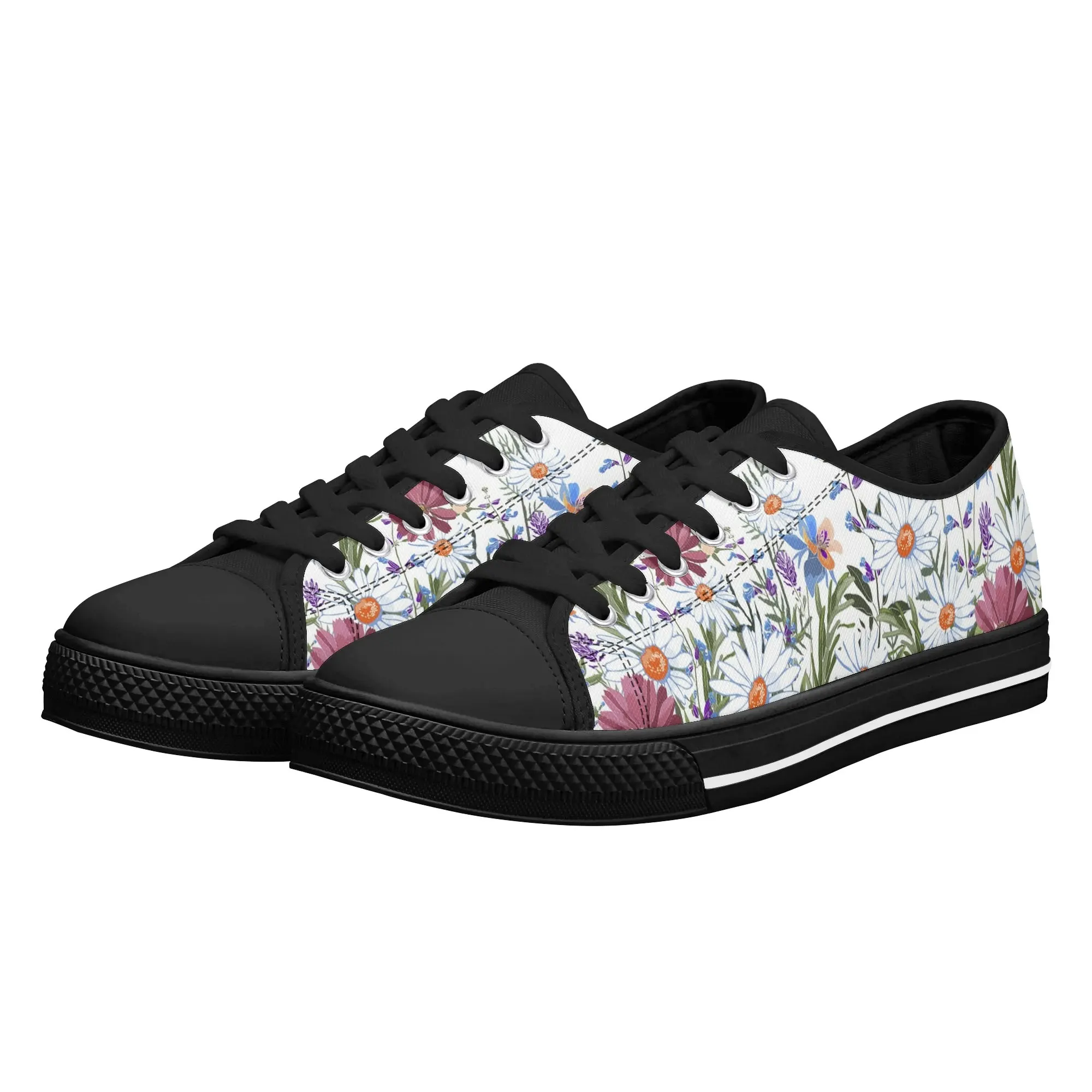 Wildflower Daisy Low Top Canvas Shoes, Cottagecore Garden Aesthetic Sneakers, White Floral Print Shoe, Spring Summer Footwear Gift